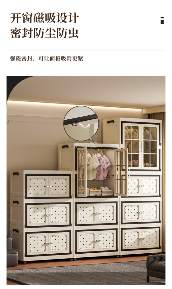 房间里总有很多杂物占地方 是时候找个柜子收纳了 推荐这个爱享多层折叠柜 积木式叠加设计,侧边卡扣固定 无论是衣服、杂物都能整洁收纳