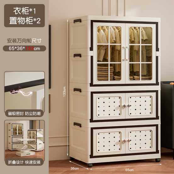 ④ 折叠置物柜2层+1衣柜组合 (编码:33865-4E-混搭)