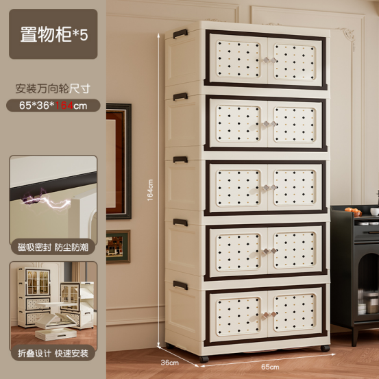 ⑤ 折叠置物柜3层+1衣柜组合 (编码:33865-5E-混搭)