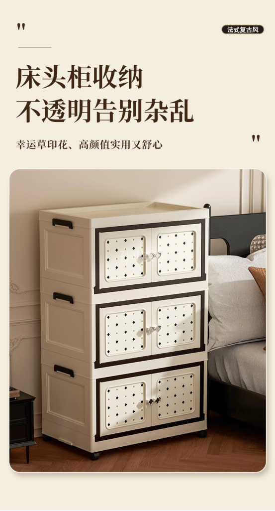 🌟🌟【简易安装 多层收纳】❗️❗️❗️孙小美免安装法式复古对开门折叠柜-33865印花款:👏 爱享多层折叠柜-简易安装 多层收纳 采用坚实的PP材质,安全无毒害💥