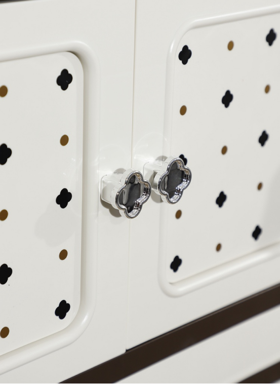 细节展示 底部万向轮,360°移动 幸运草印花,颜值担当 把手设计,质感细腻