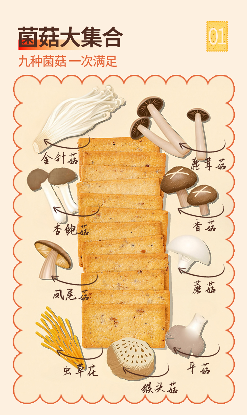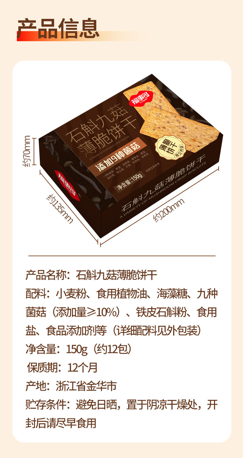 福事多石斛九菇薄脆饼干150g*3盒