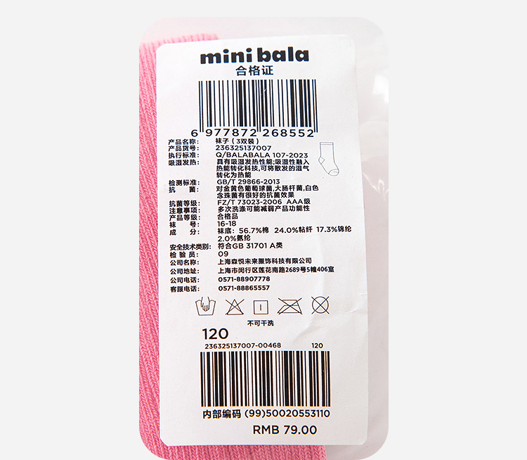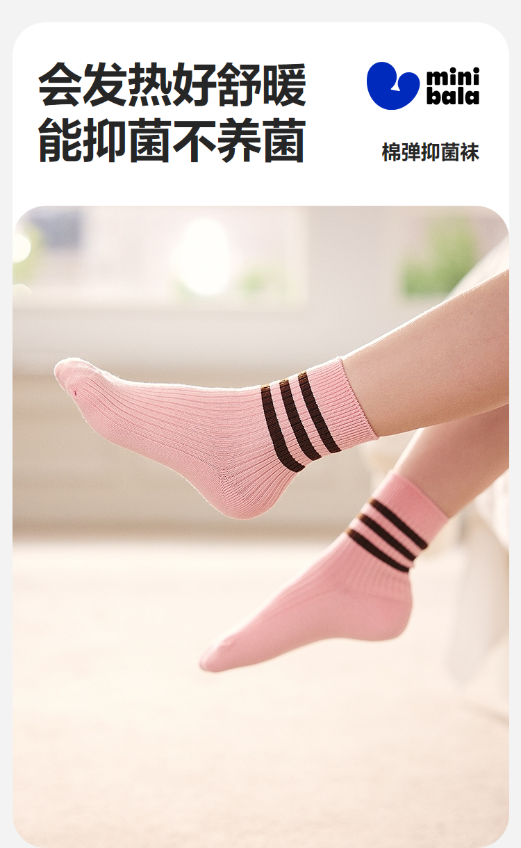 【3双装】迷你巴拉儿童袜子男女童宝宝棉袜吸湿中筒袜2025年秋季