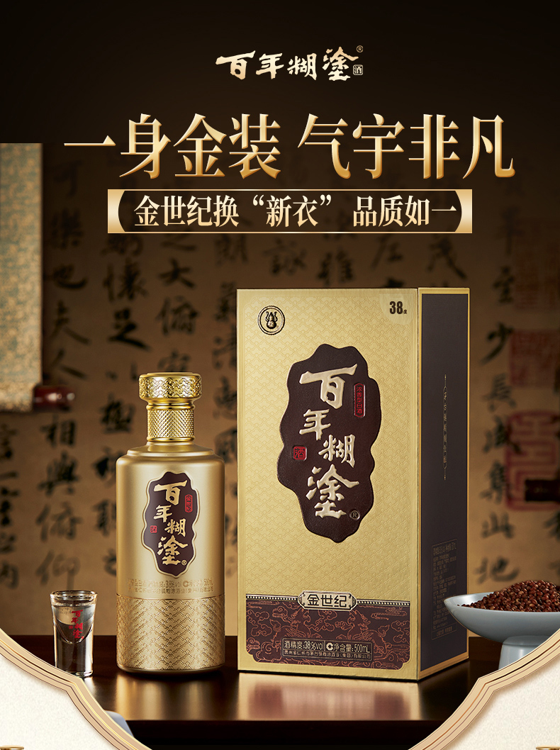 百年糊涂浓香型白酒38度 500mL*6瓶 金世纪【官方正品】