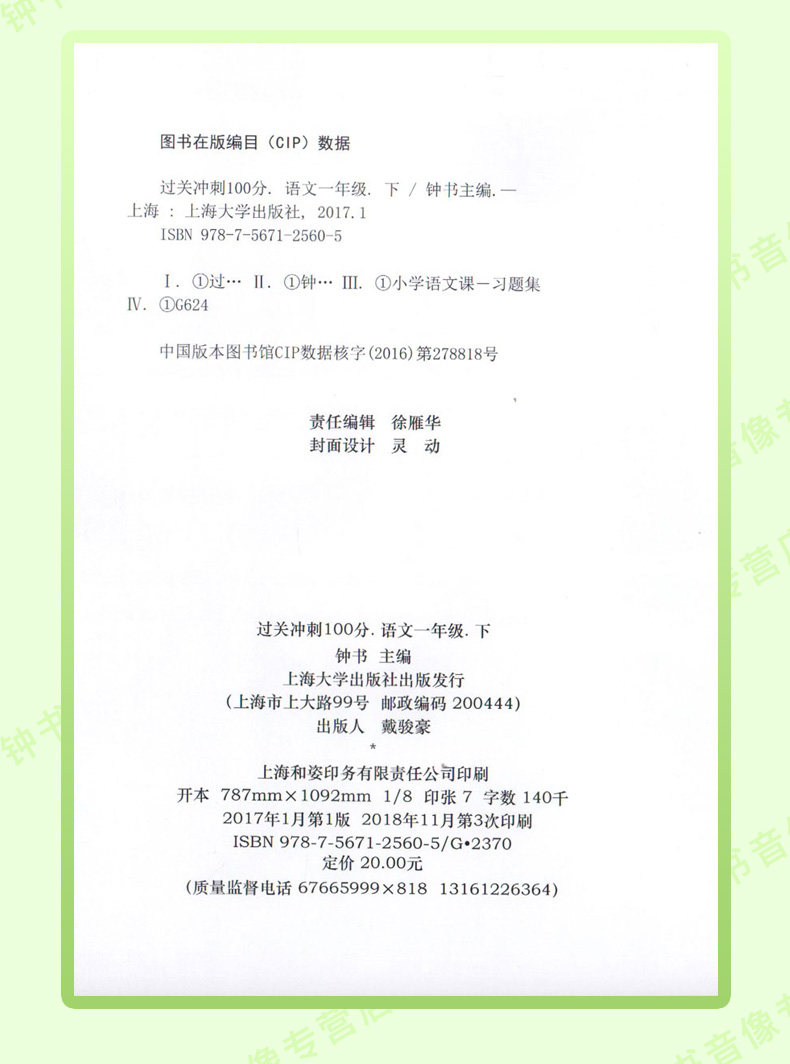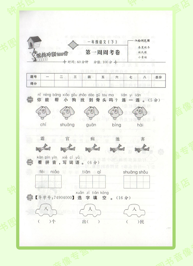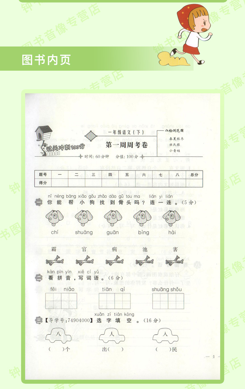 钟书金牌过关冲刺100分 部编版语文 1年级下册/一年级第二学期 上海小学教材教辅配套试卷周考月考单元测试卷期中期末满分冲刺卷