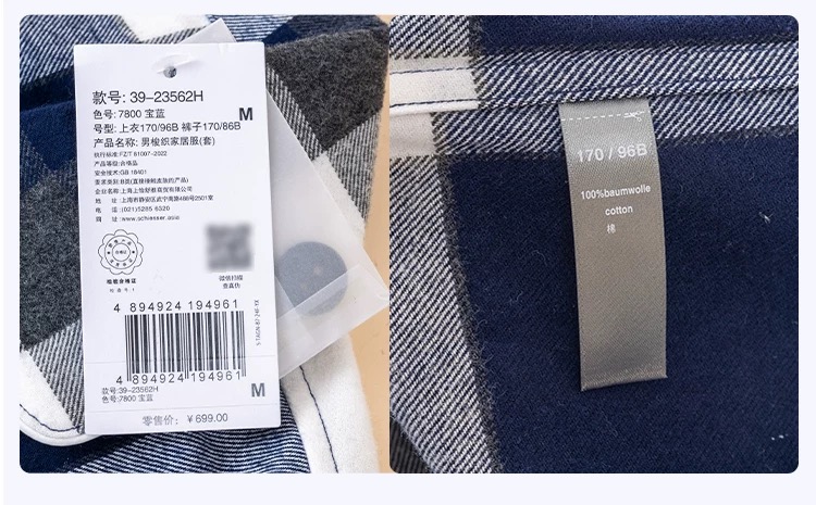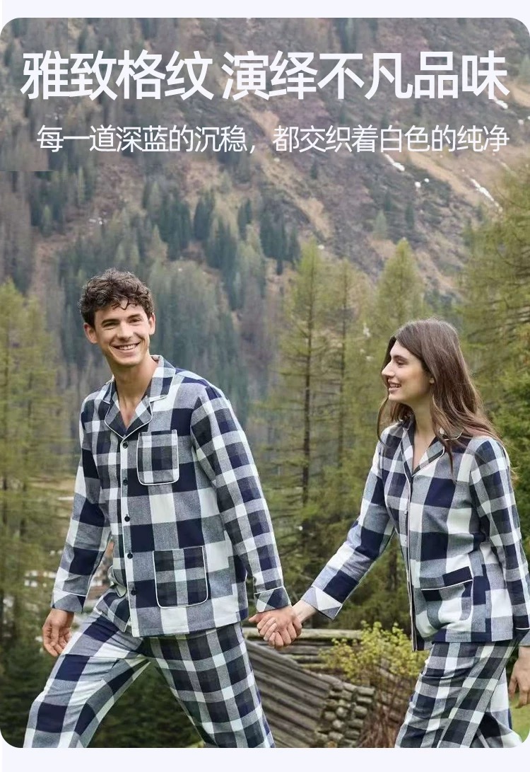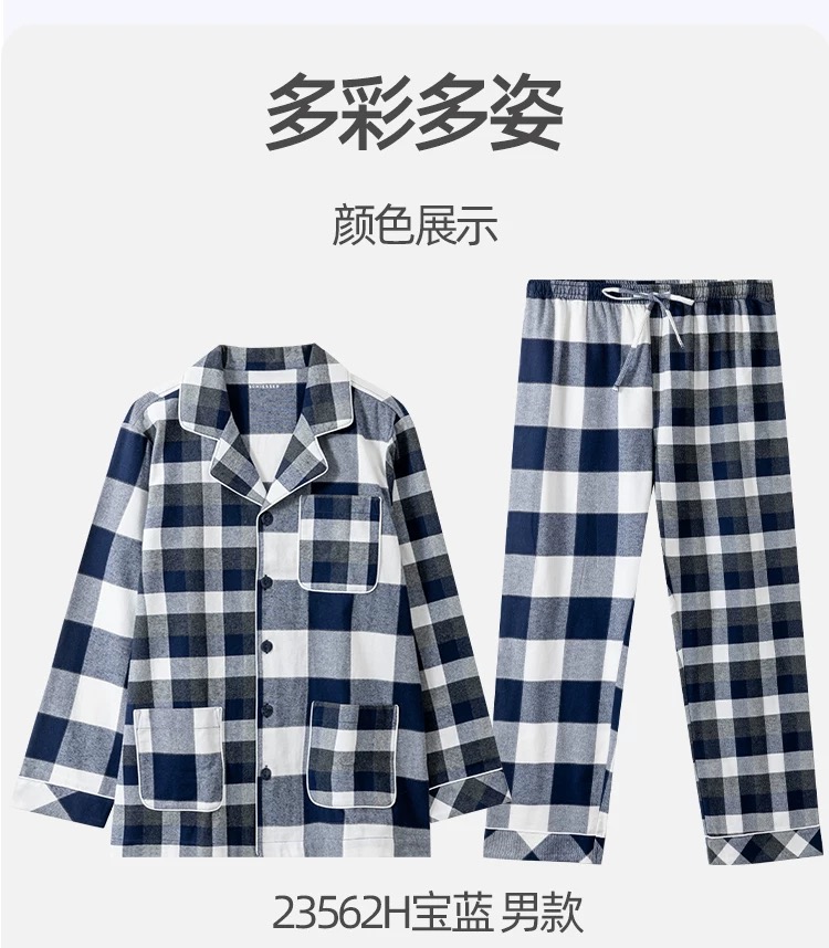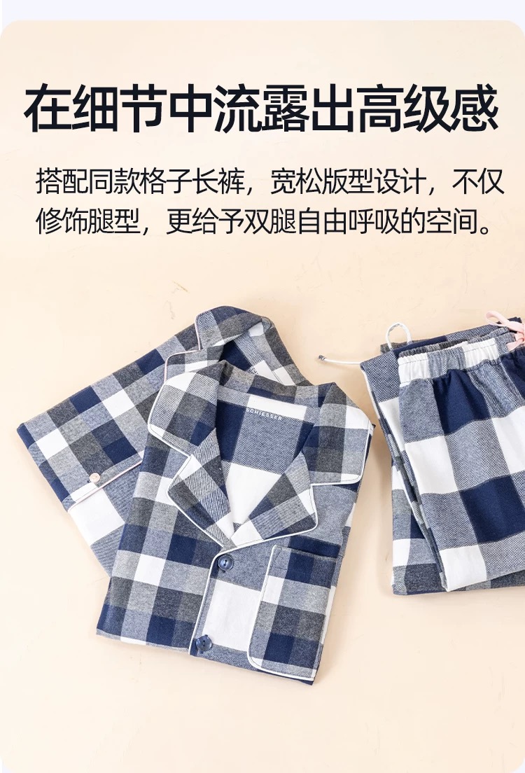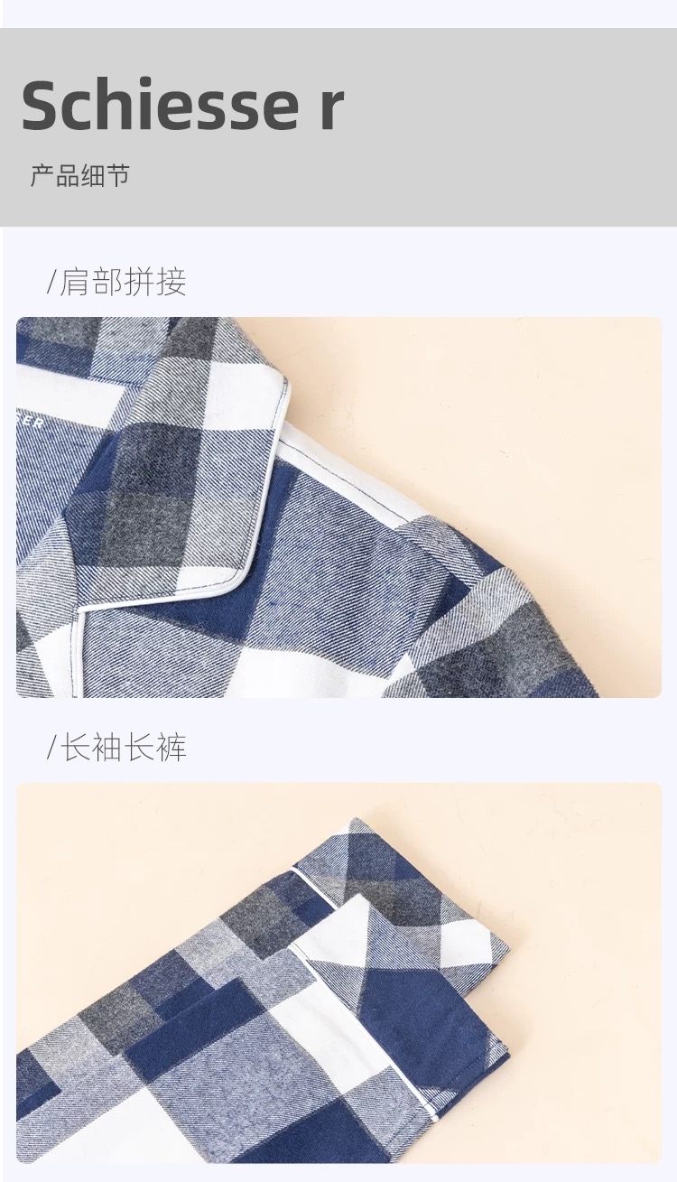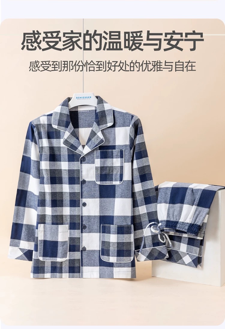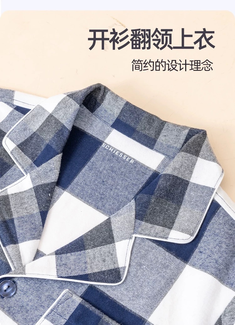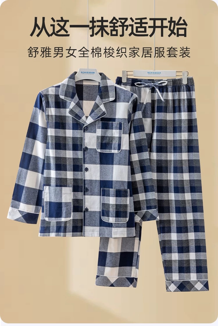 【情侣全棉 经典AB格】SCHIESSER德国舒雅全棉AB格子情侣系列男士长袖家居套装39/23562H
