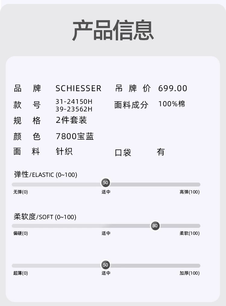 - 来自德国的SCHIESSER舒雅,专注做内衣一百四十余年,不遗余力的材料创新,因材而异的专业剪裁,健康环保的加工技术以及充满文化关注的时尚主题,做你认识之外的舒适内衣。