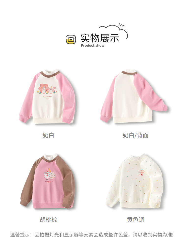 巴拉巴拉童装儿童卫衣女童秋冬装拼色假两件上衣加绒内搭甜美潮流