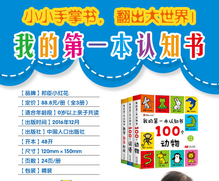邦臣小红花-我的第一本认知书 全3册(含数动物/词语/数字颜色形状)