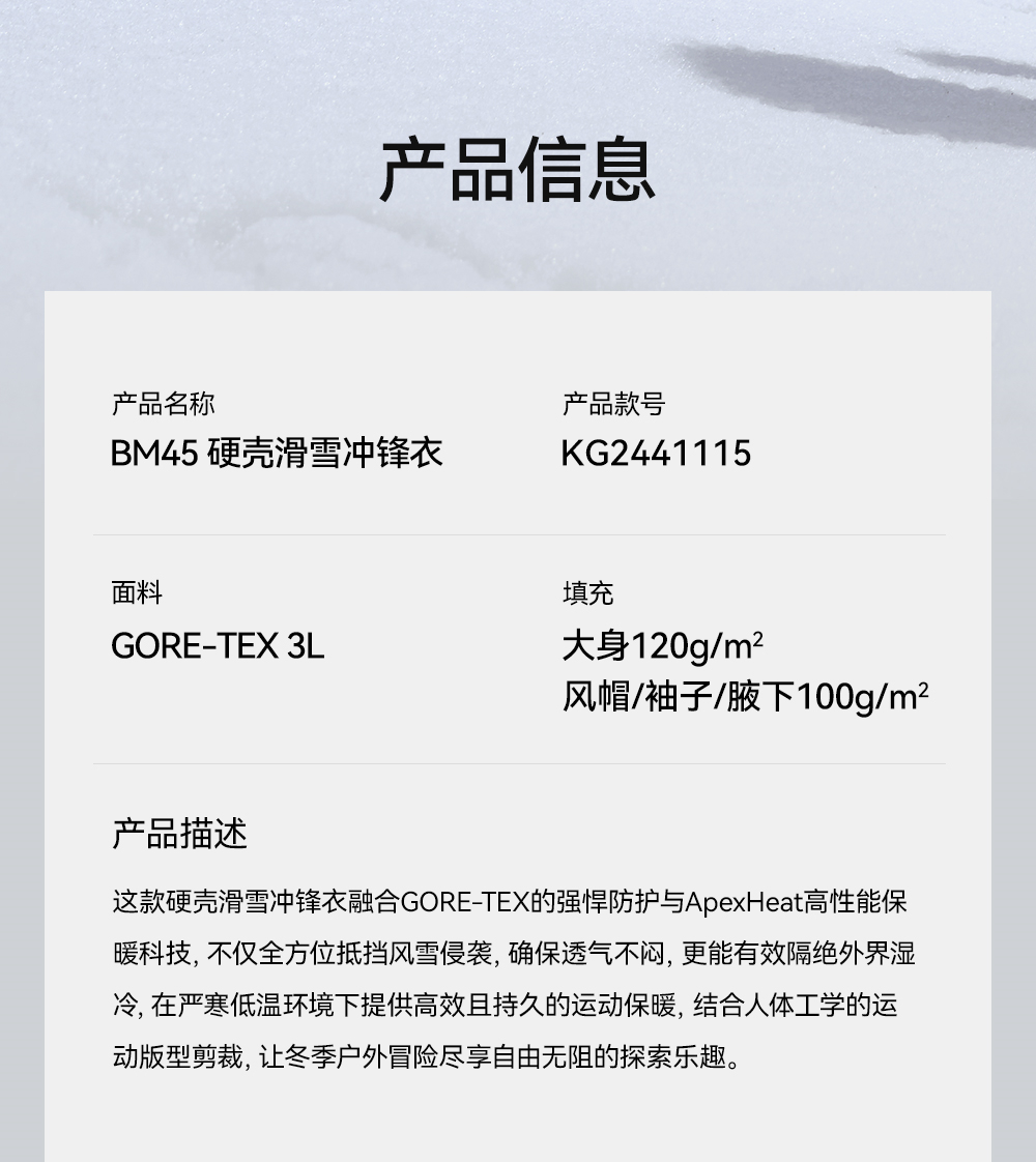 KAILAS凯乐石 BM45 硬壳滑雪冲锋衣 KG2441115