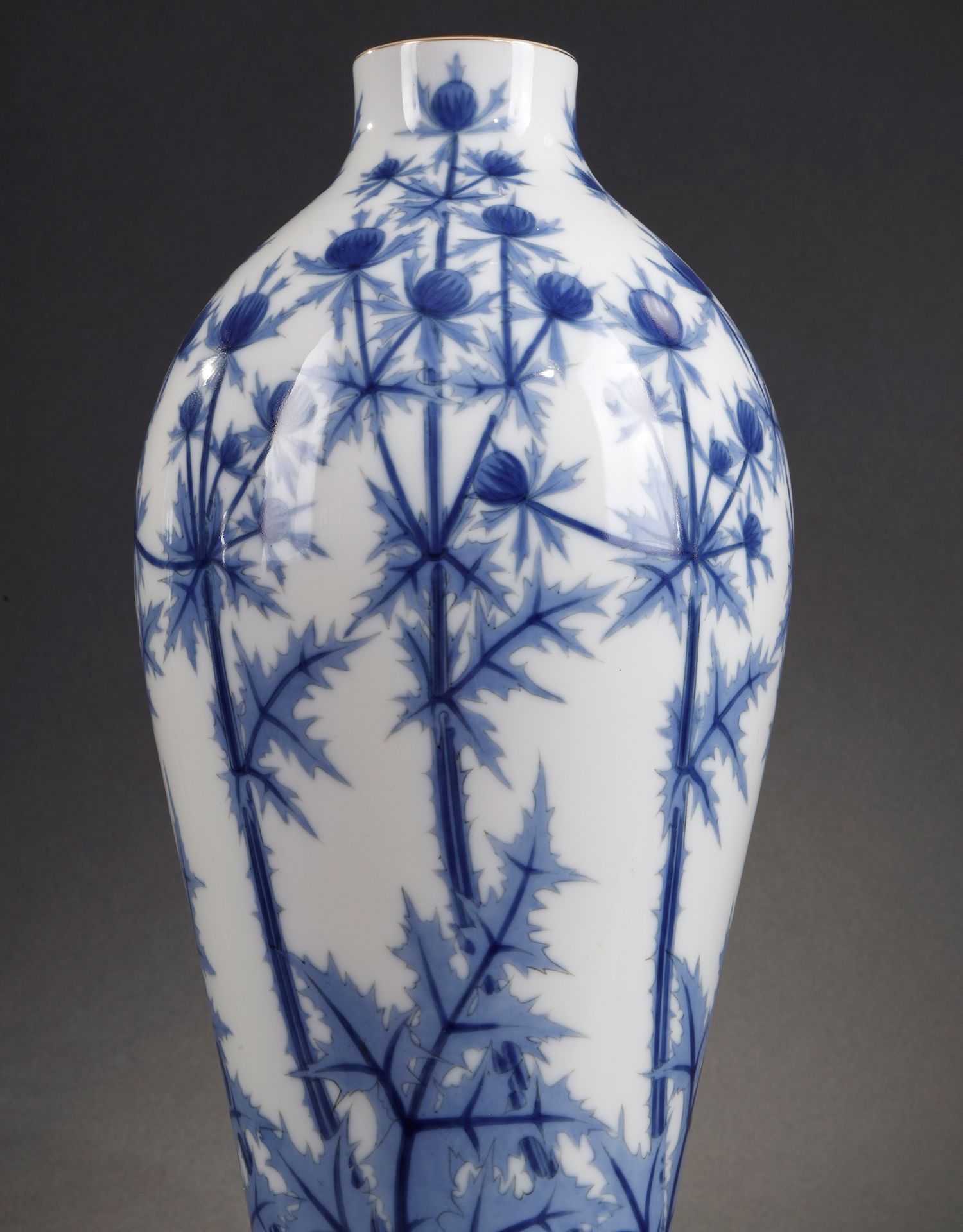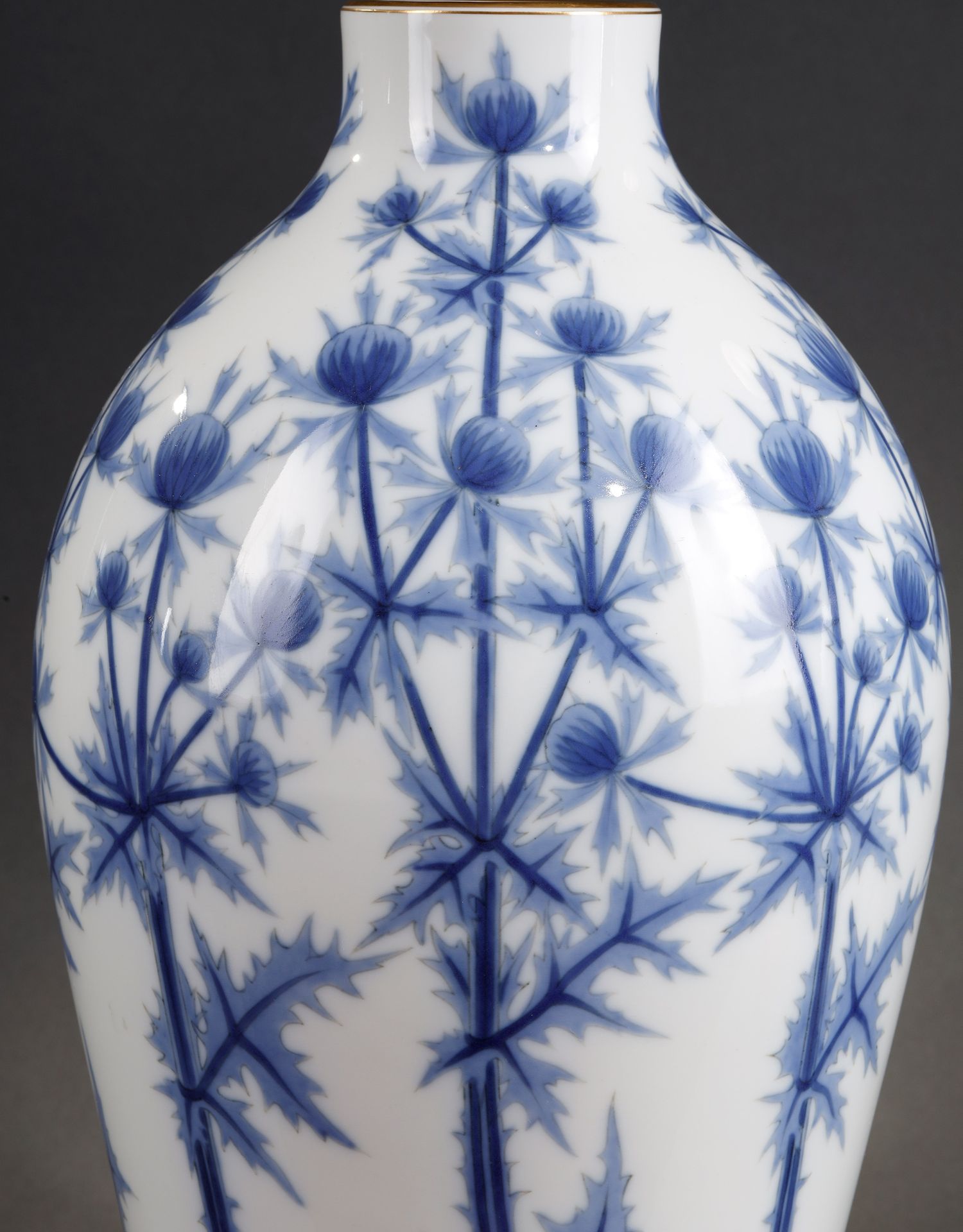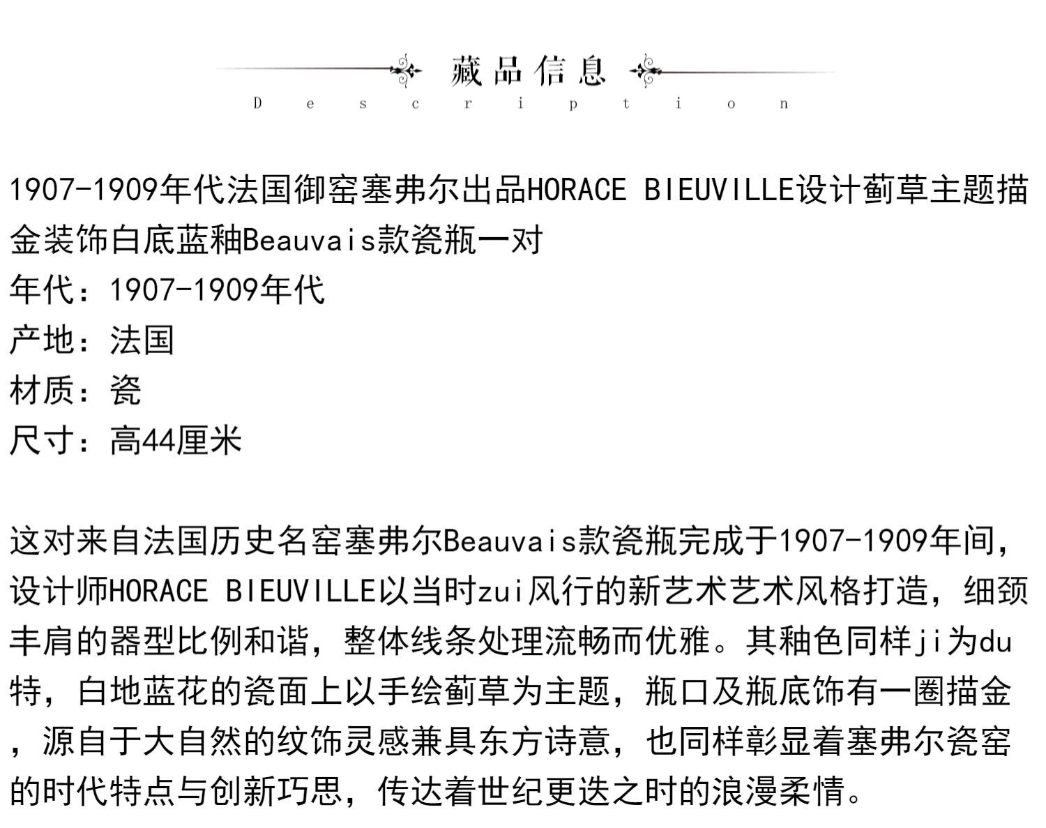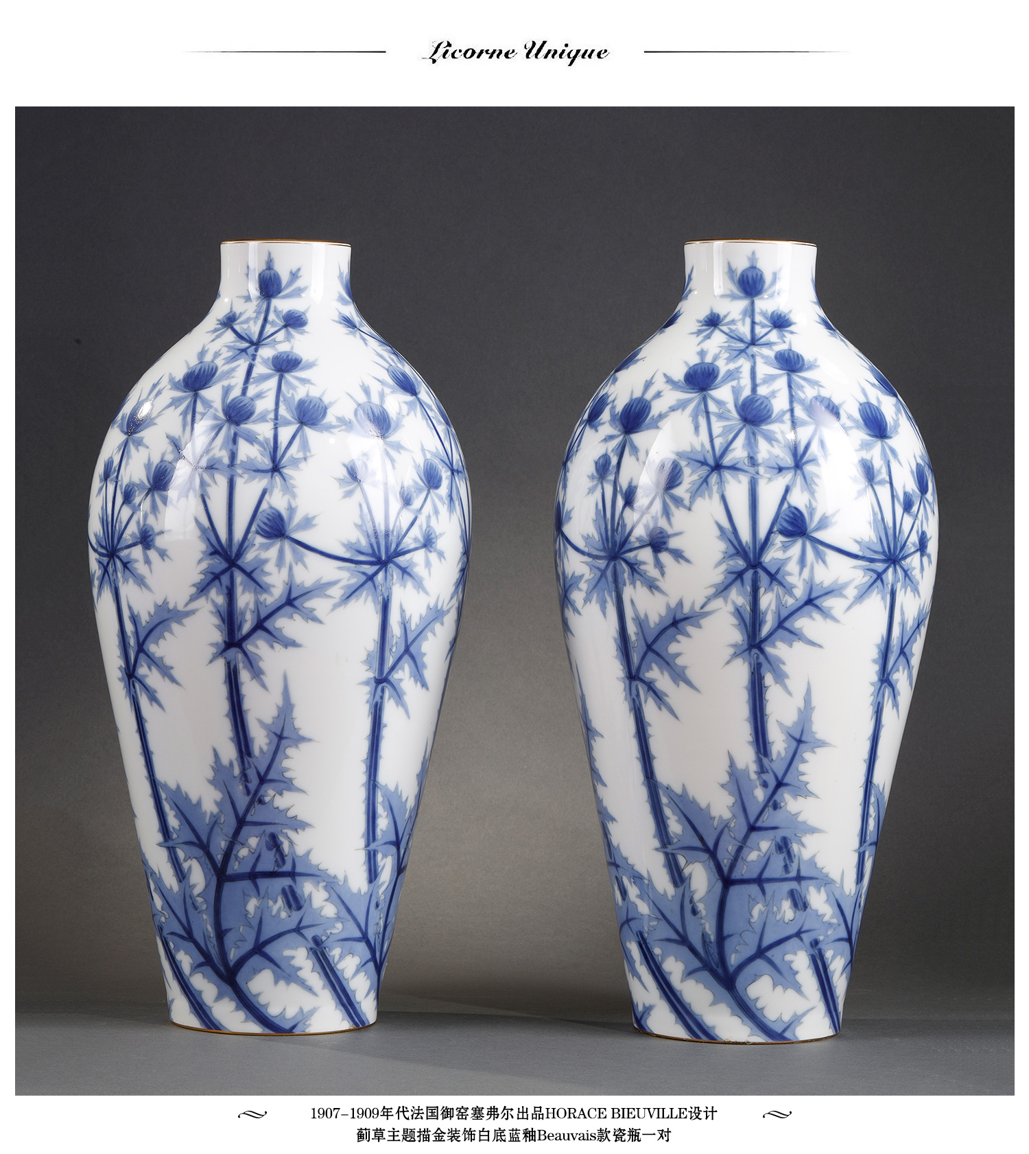 独角鹿西洋古董法国塞弗尔瓷器蓟草描金白底蓝釉Beauvais款瓷瓶