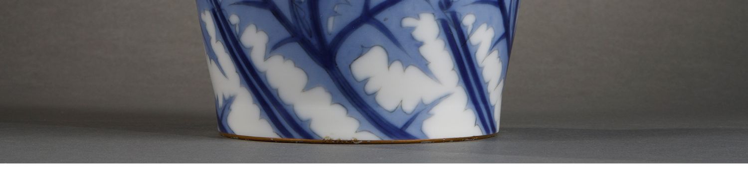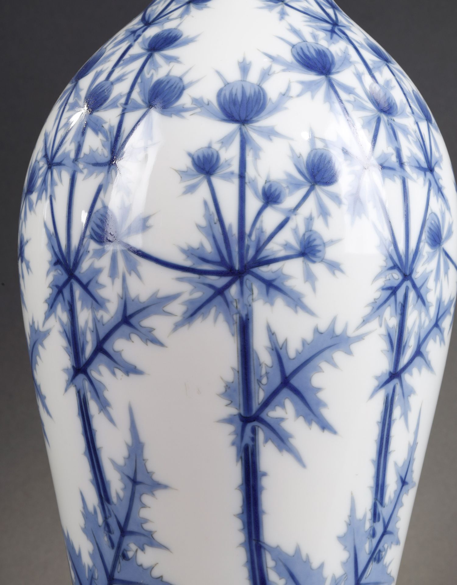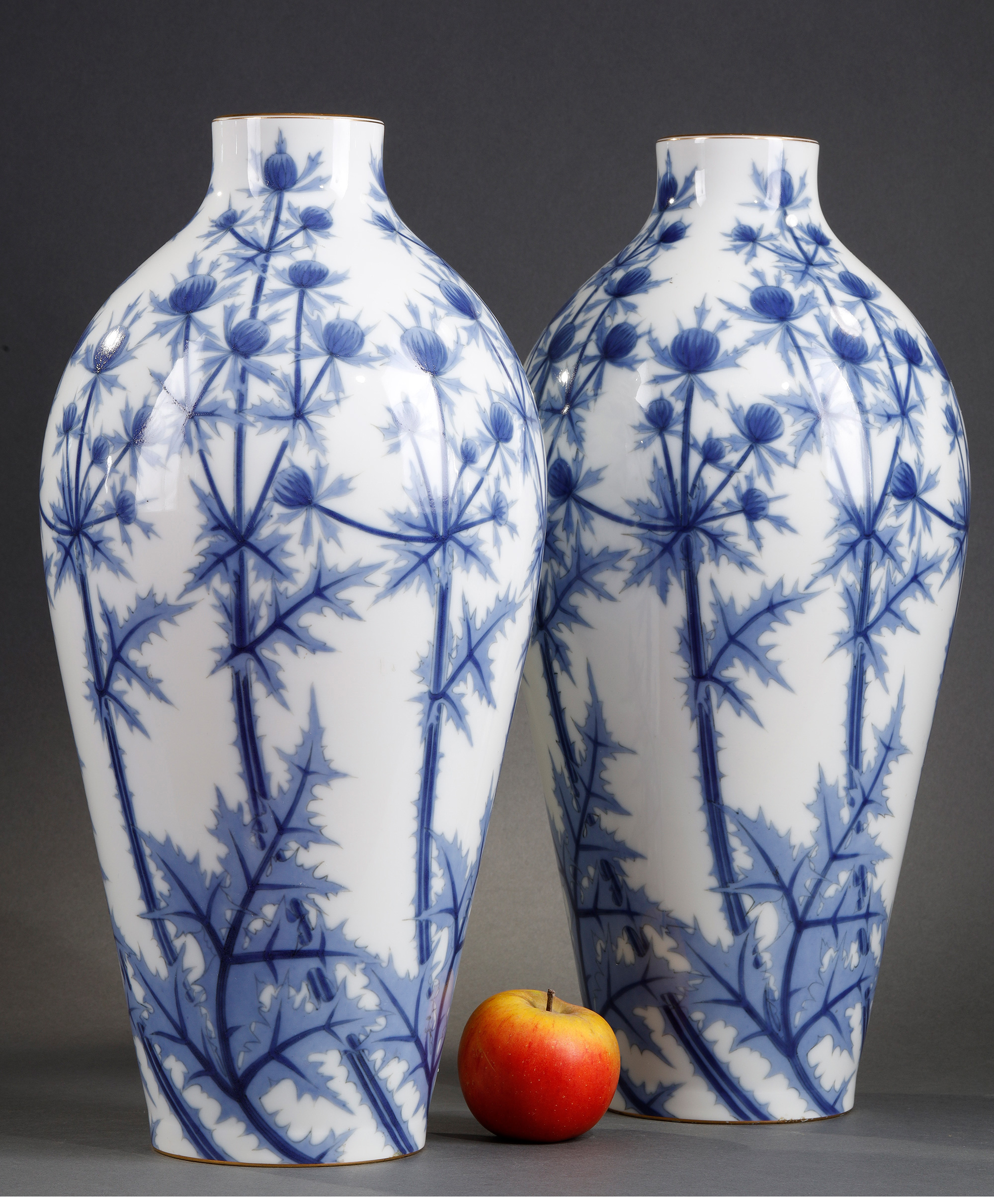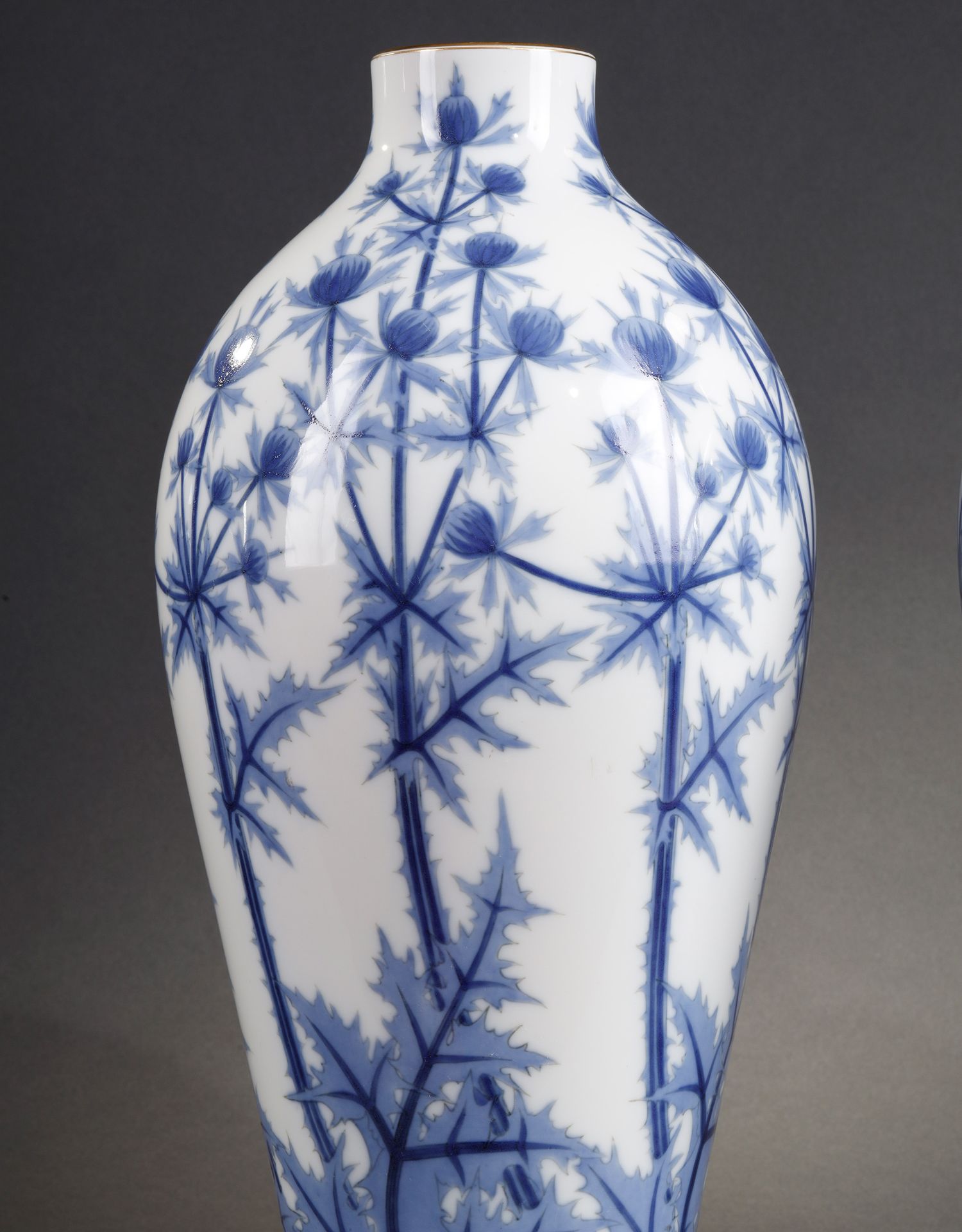 独角鹿西洋古董法国塞弗尔瓷器蓟草描金白底蓝釉Beauvais款瓷瓶