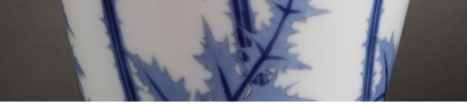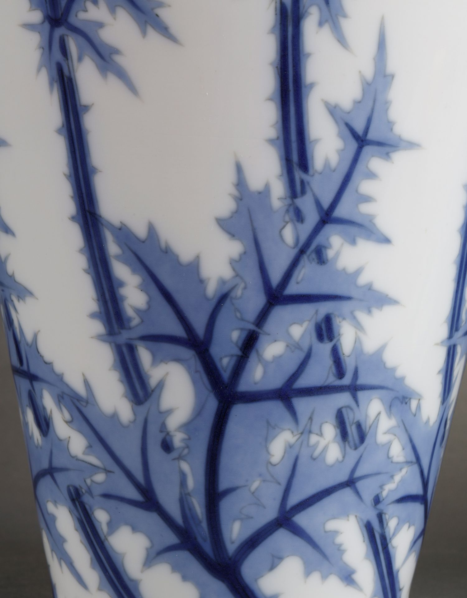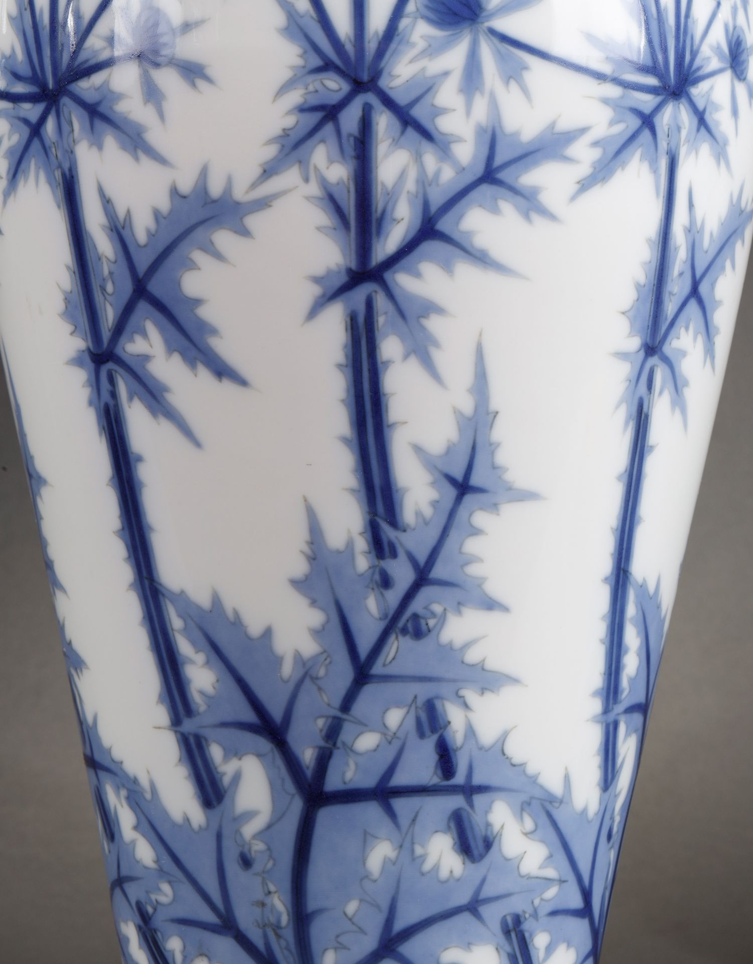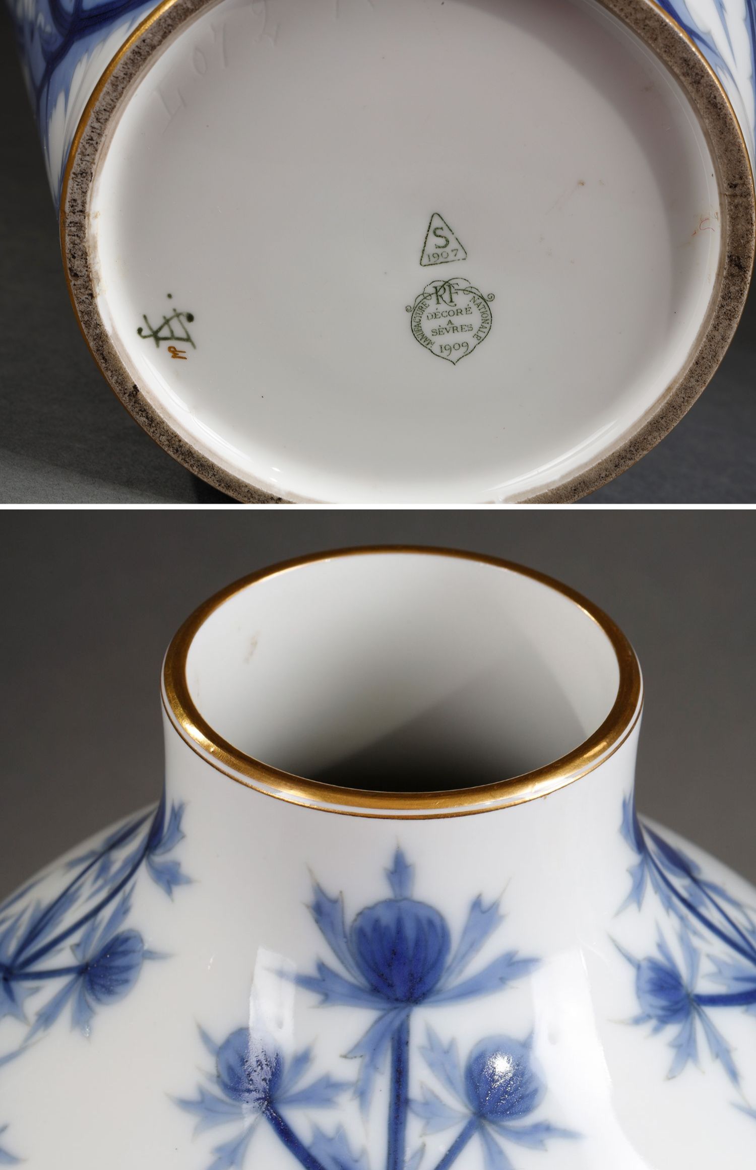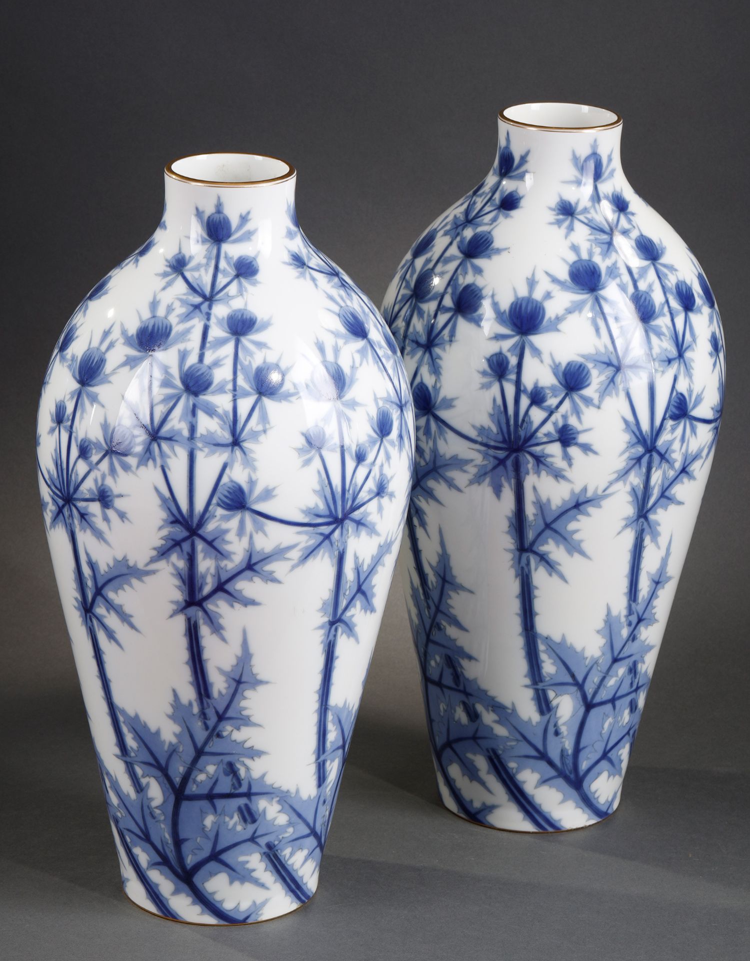 独角鹿西洋古董法国塞弗尔瓷器蓟草描金白底蓝釉Beauvais款瓷瓶
