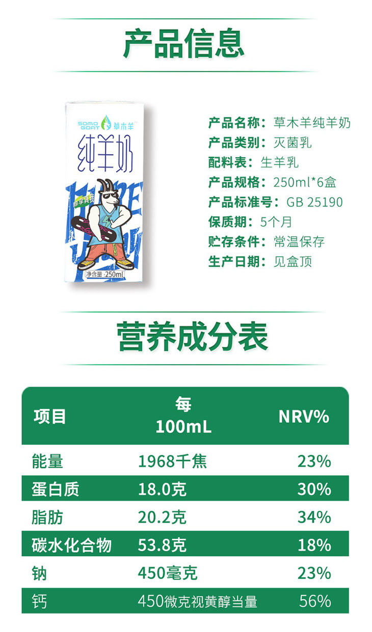 草木羊 | 纯羊奶 生羊乳山羊奶 非牛奶250ML*6盒