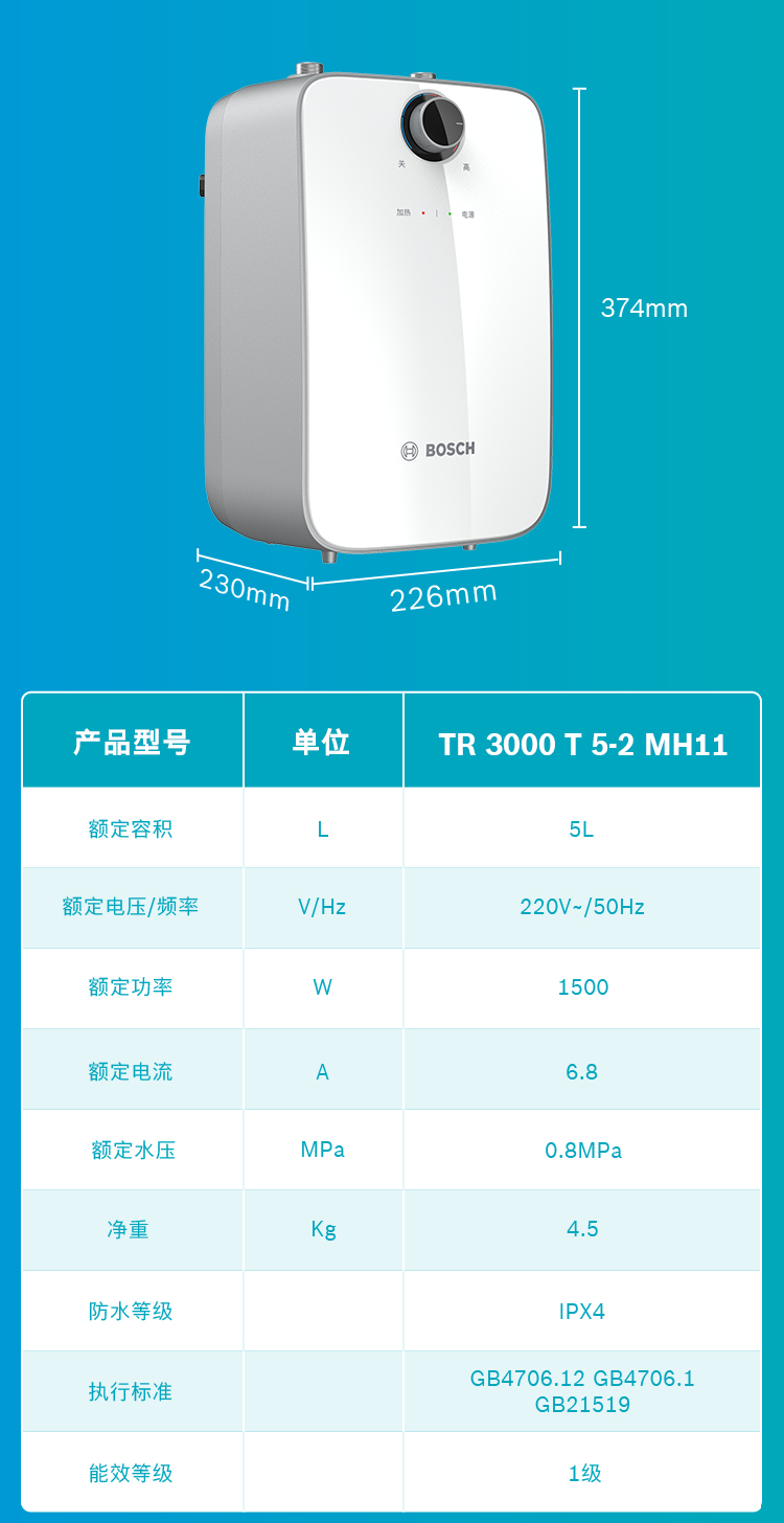 员工内购平台Bosch/博世5升家用厨房厨宝一级能效速热型电热水器储水式小厨宝