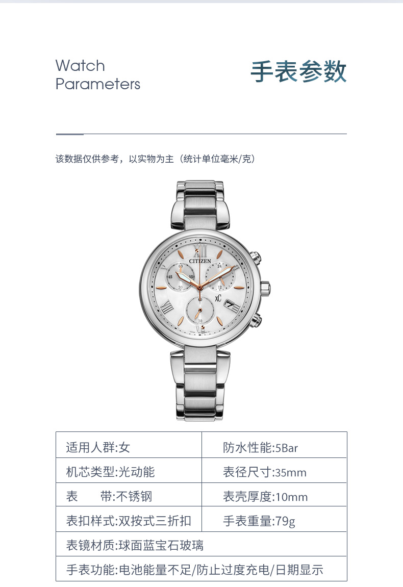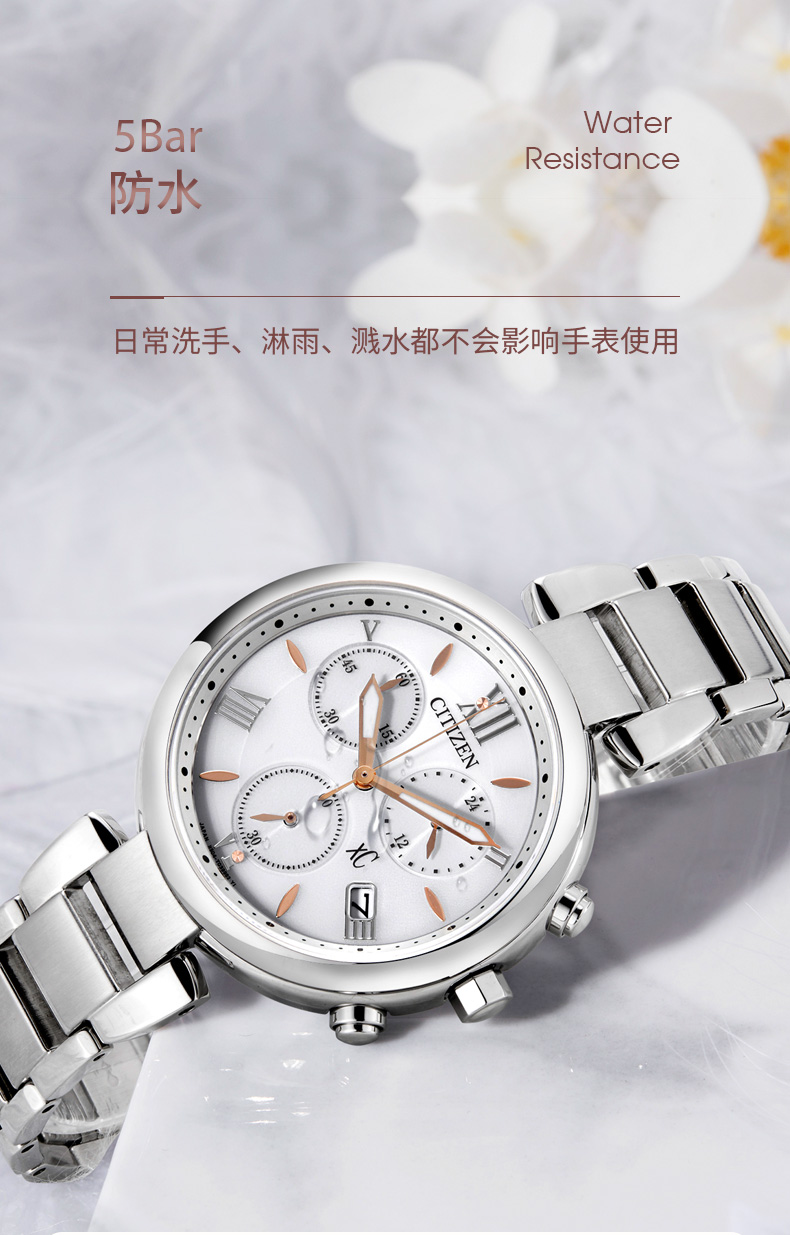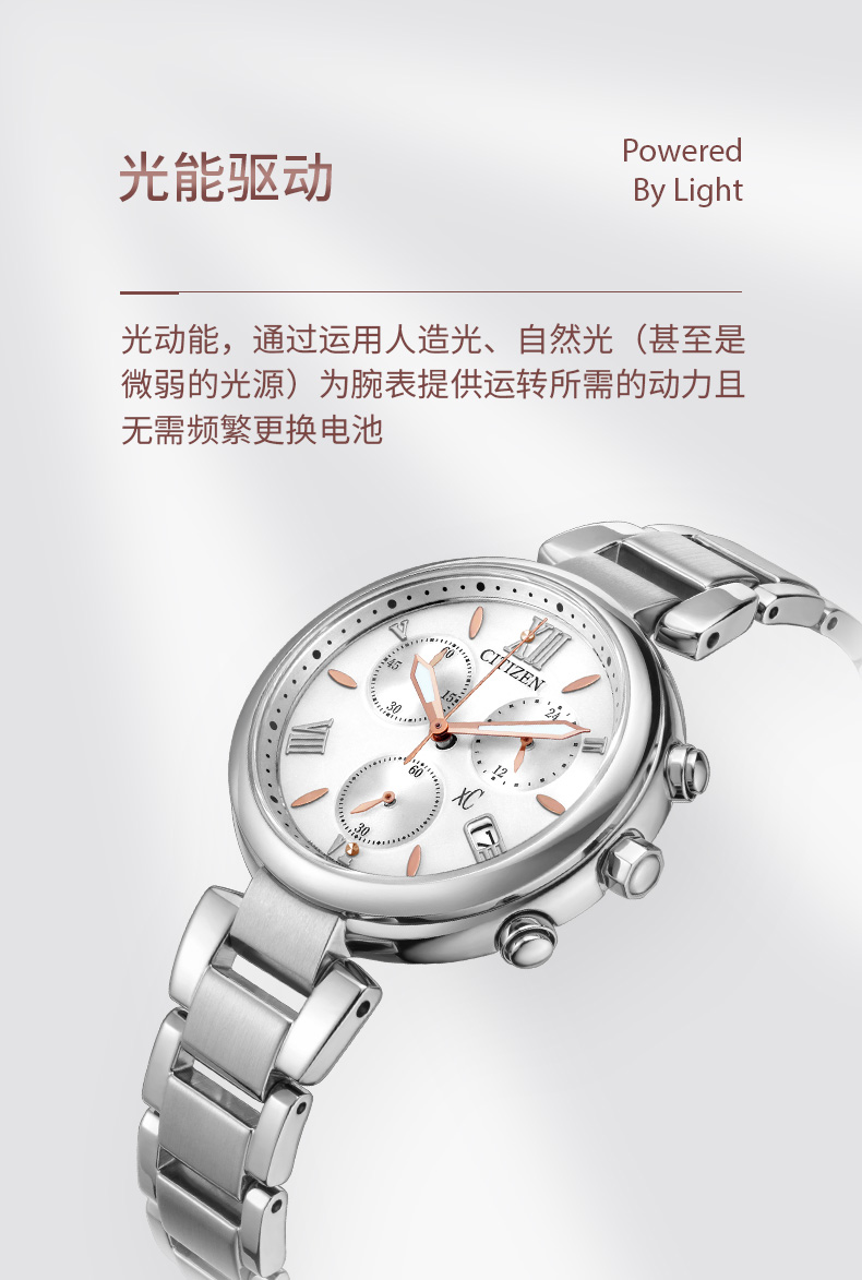 西铁城日本官方正品时尚优雅xC系列日期显示钢带光动能女表FB1450-53A