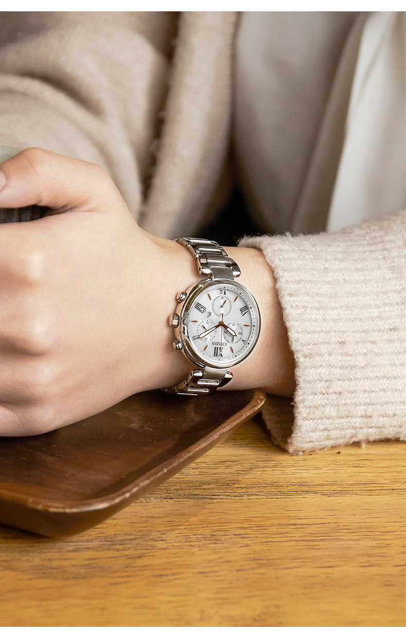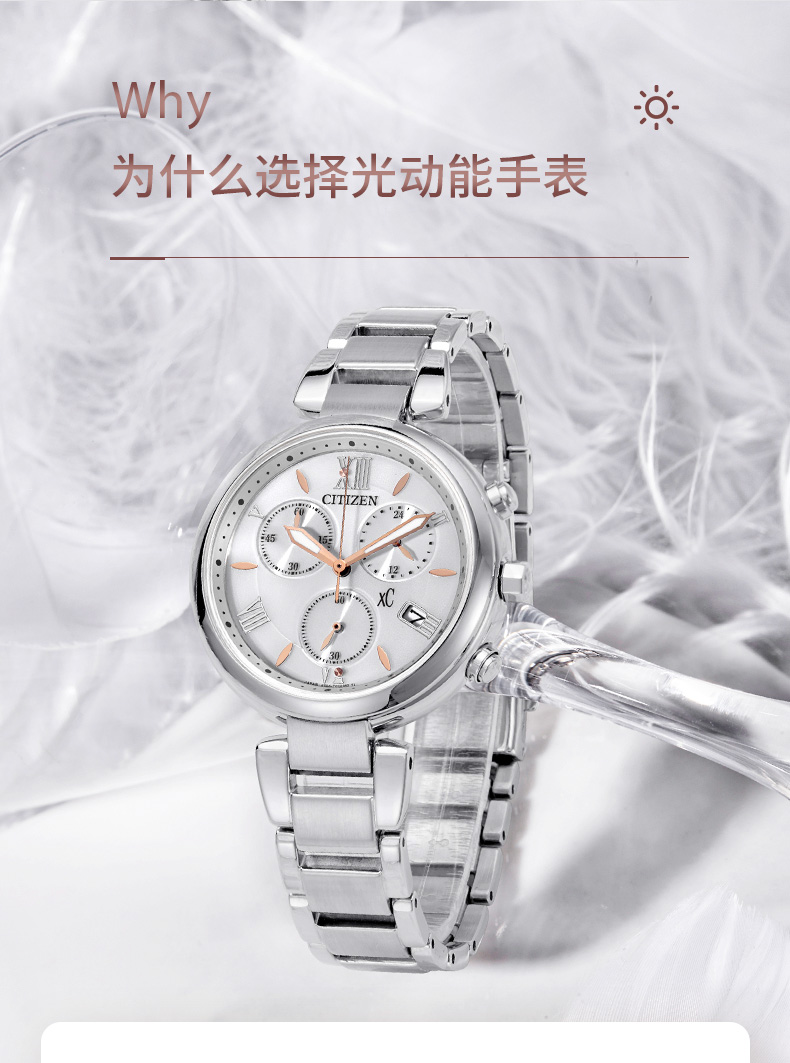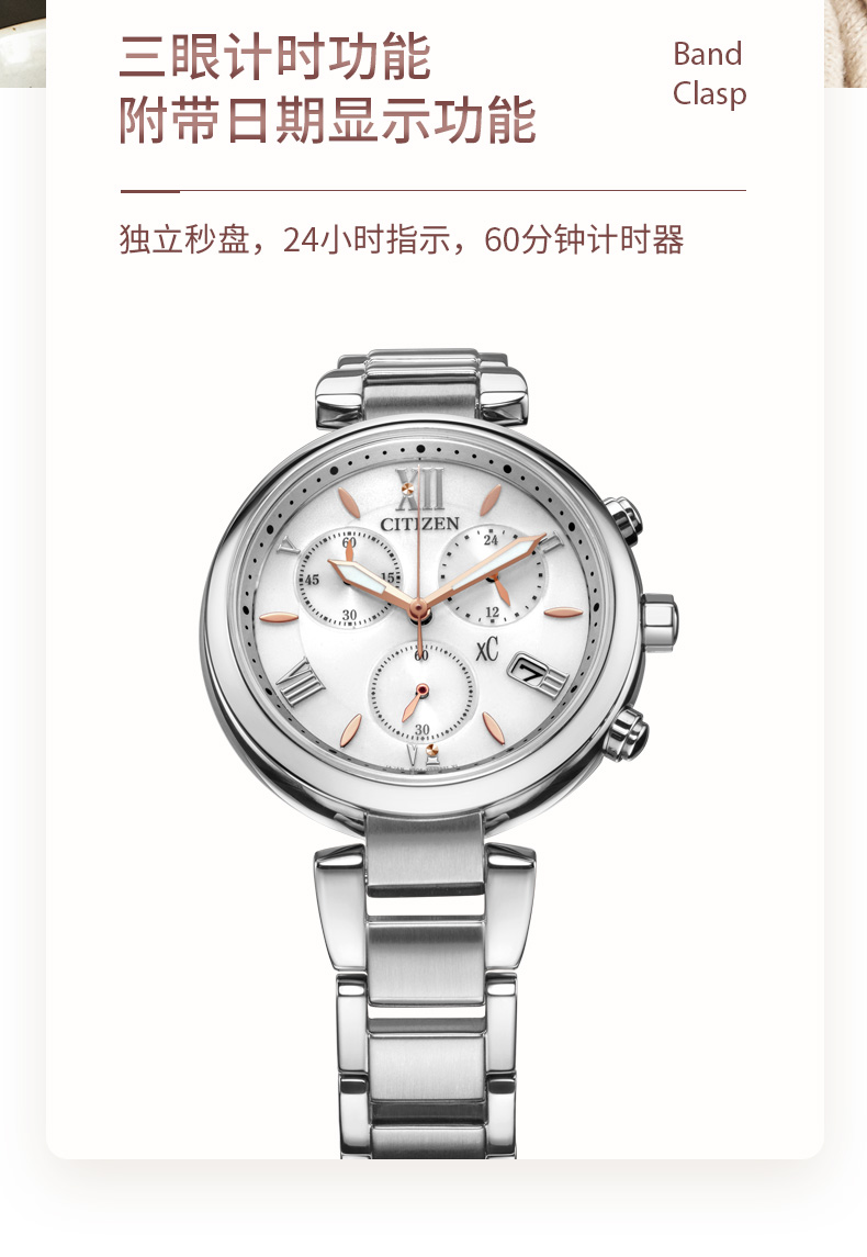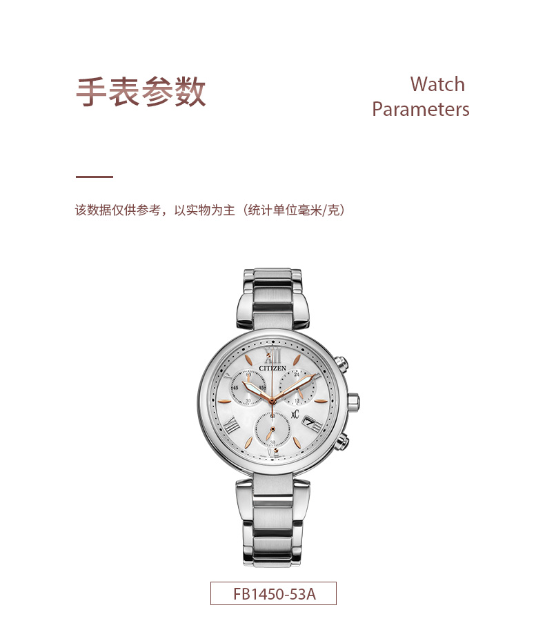 西铁城日本官方正品时尚优雅xC系列日期显示钢带光动能女表FB1450-53A