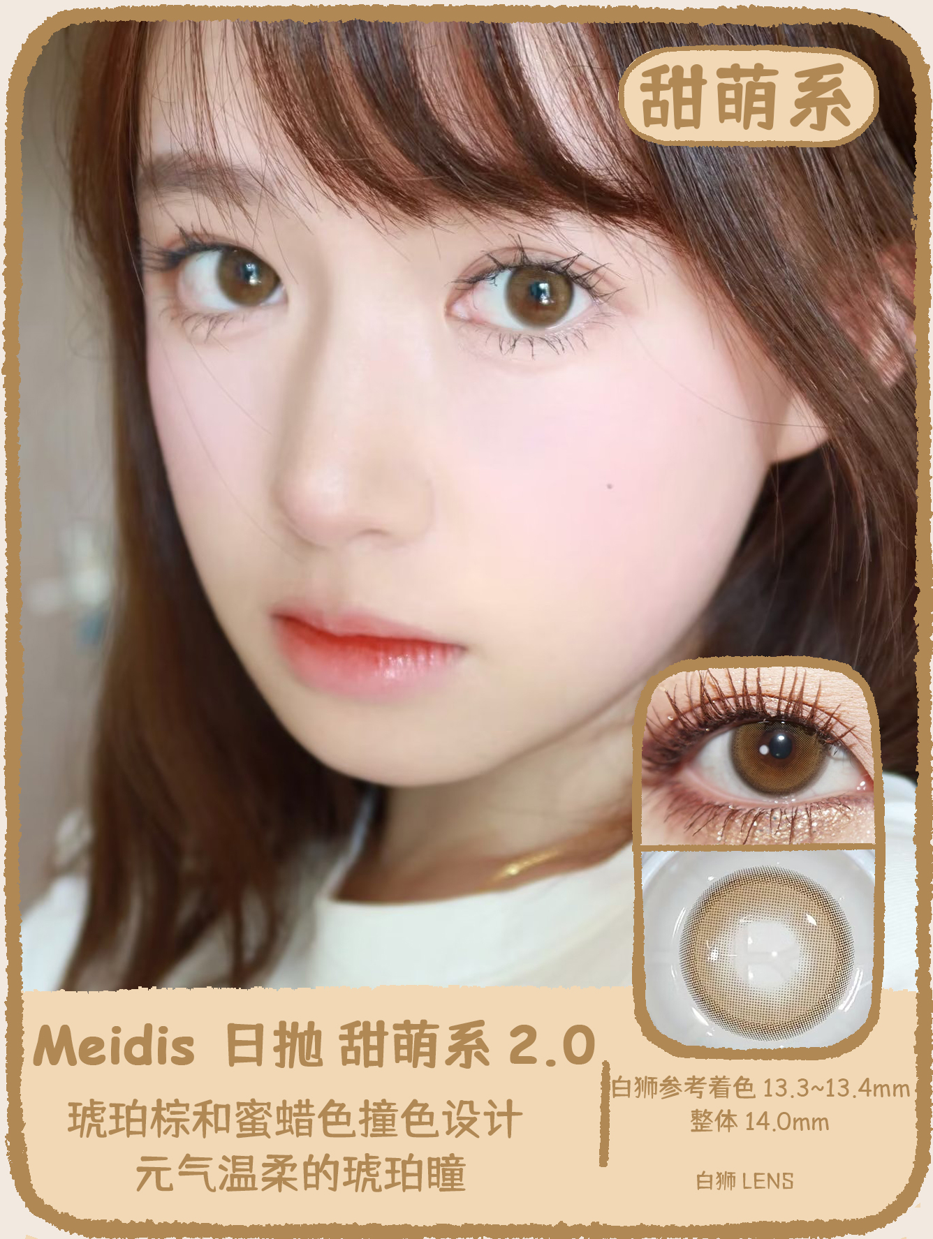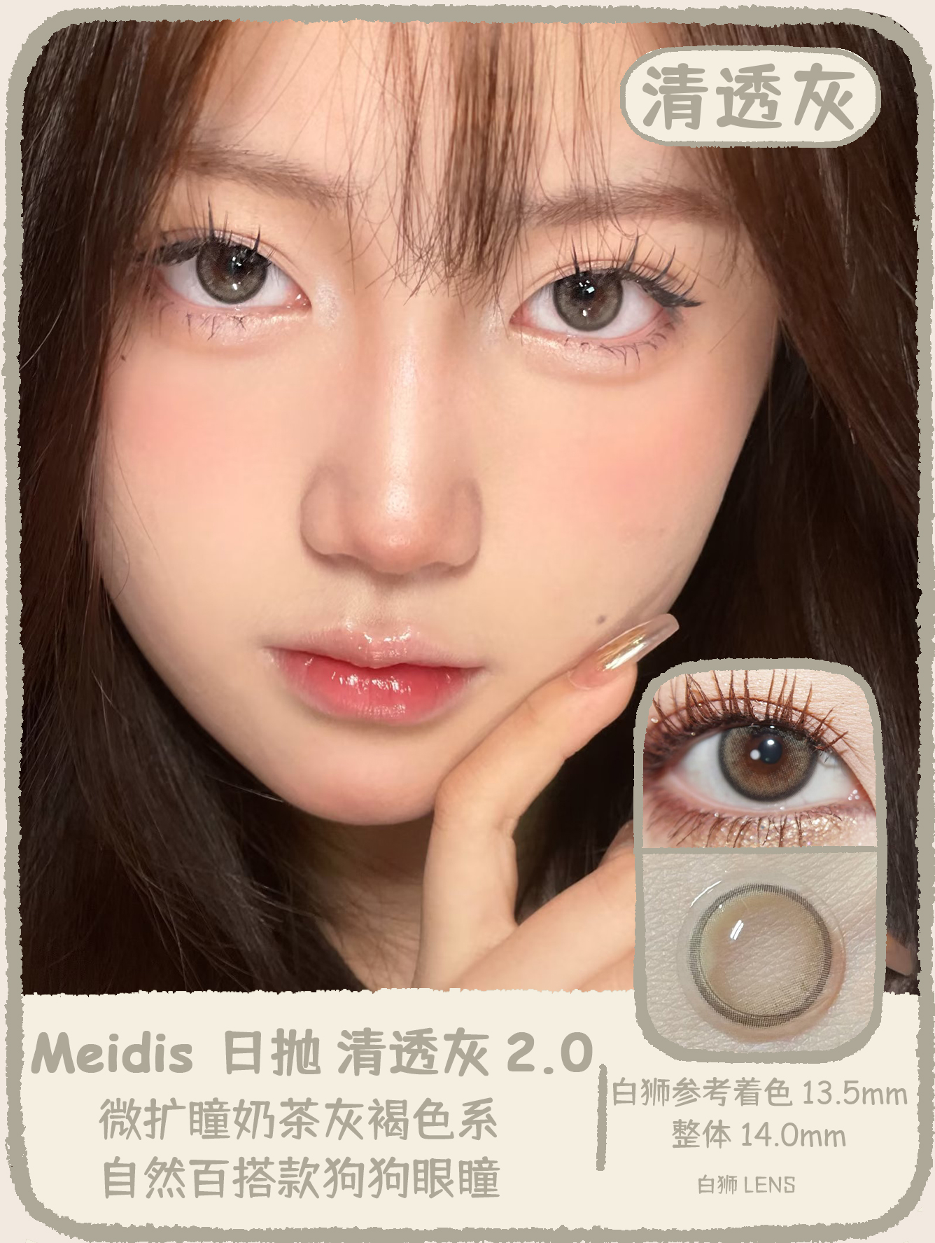 Meidis美蒂斯 国产日抛 清透灰2.0&甜萌系2.0 | 14.0mm白狮参考着色中等(大)直径