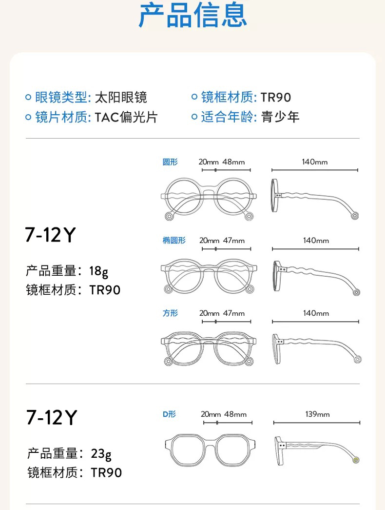 Olivio 大童7-12Y 椭圆形太阳眼镜