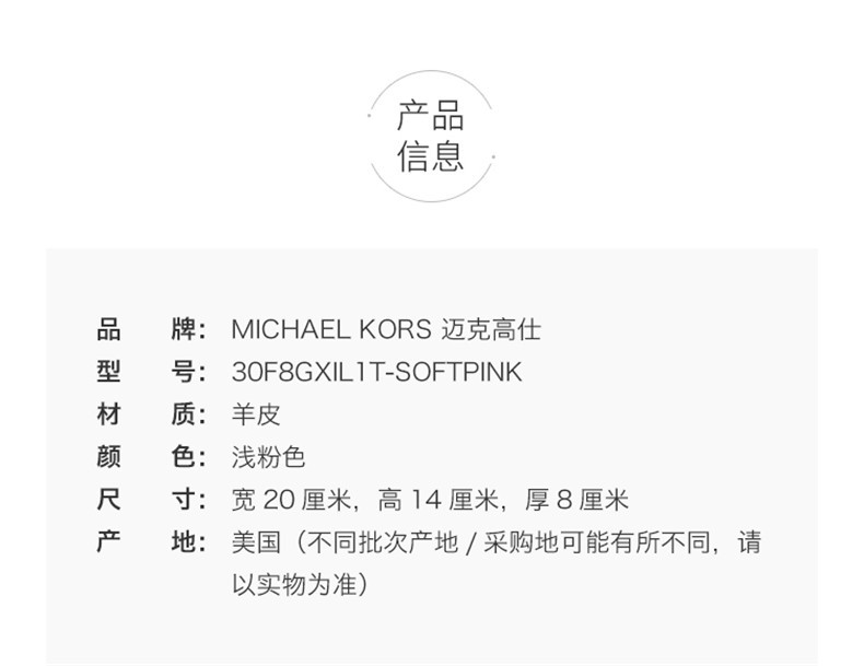 MICHAEL KORS/迈克高仕 浅粉色女士挎包 30F8GXIL1T-SOFTPINKJPY带授权招加盟代理