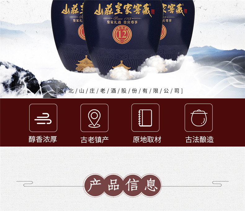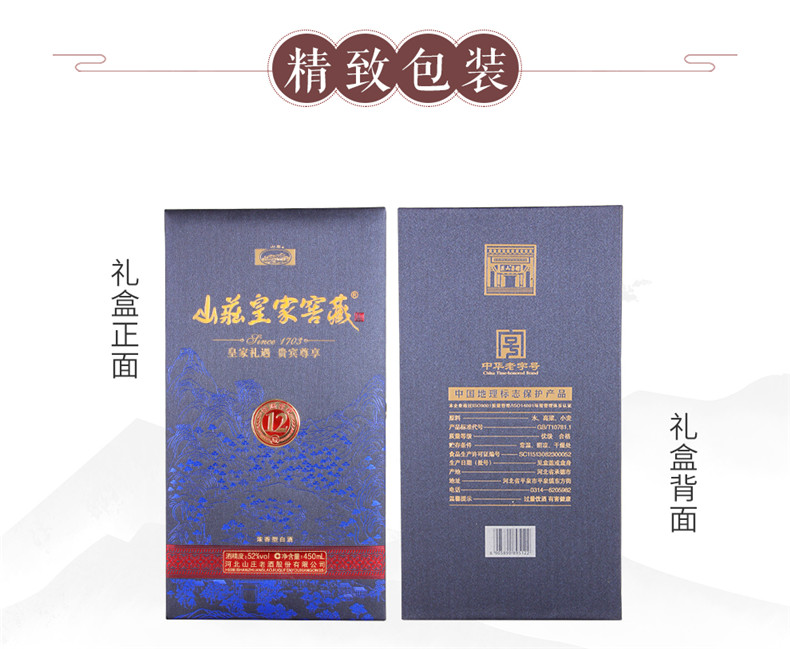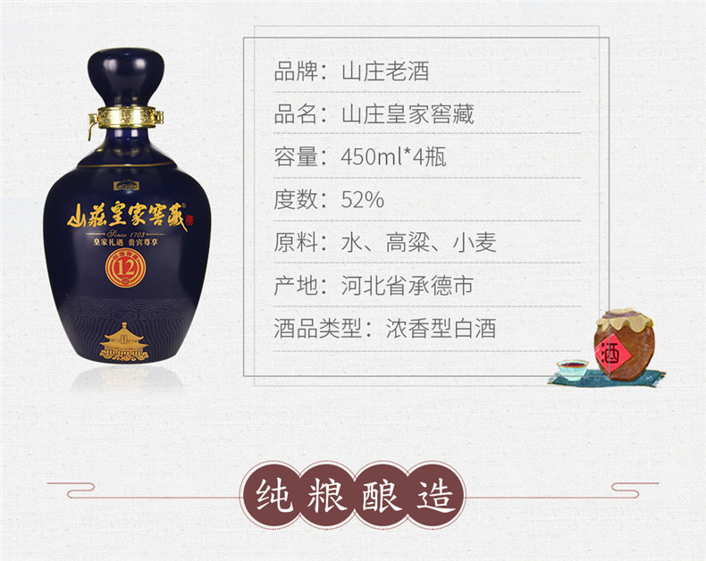 山庄皇家窖藏12 52度450ml*4瓶整箱装 纯粮食浓香型白酒