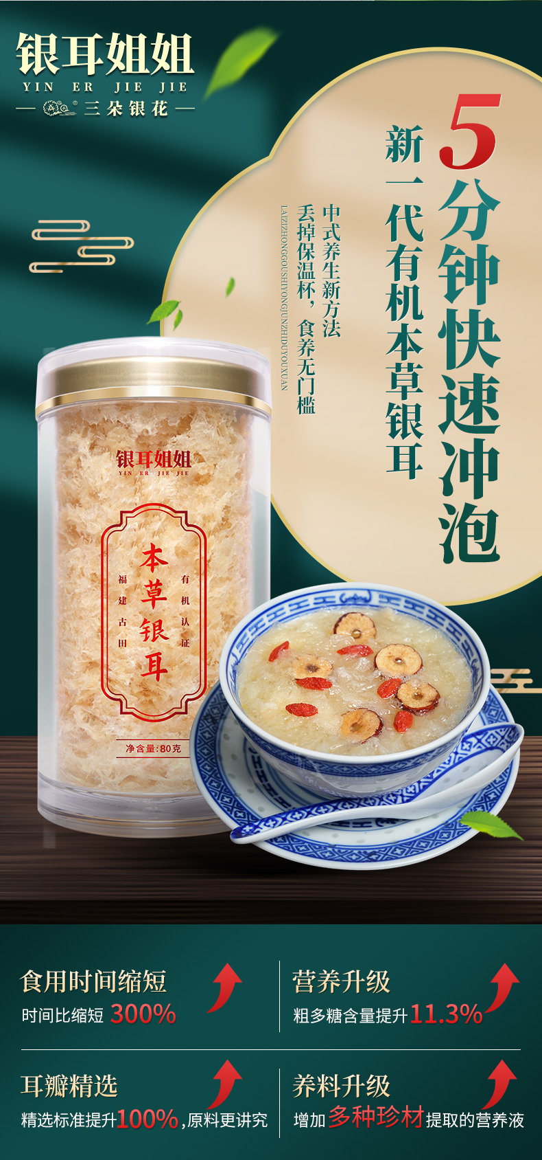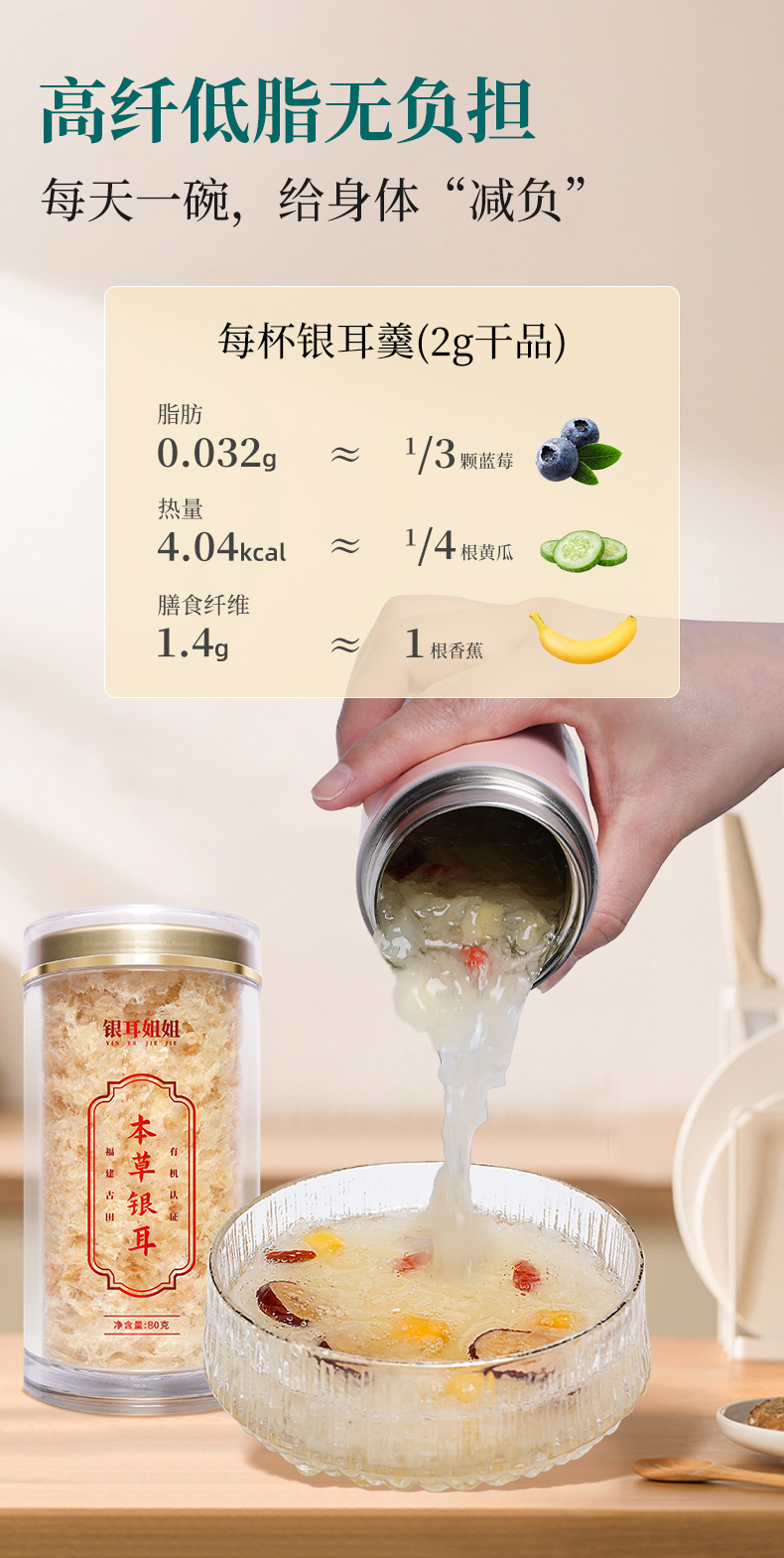 三朵银花 银耳姐姐有机本草银耳80克*2罐 礼盒装 免洗免泡冲泡速食