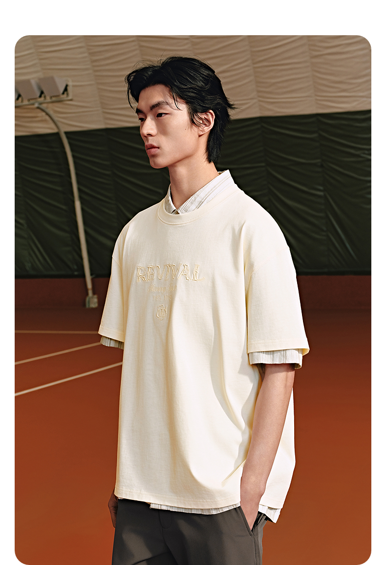 GXG男装 肩部拼接绣花POLO衫通勤时尚短袖上衣 2025春季热卖