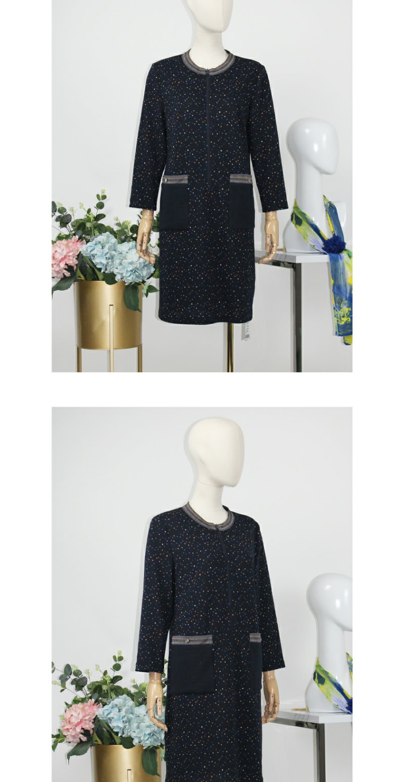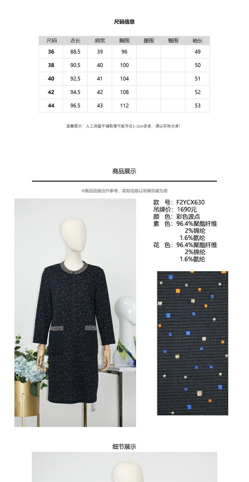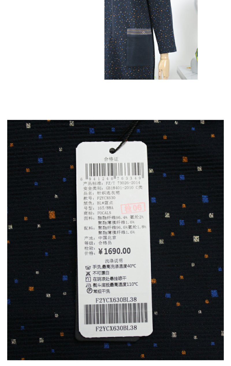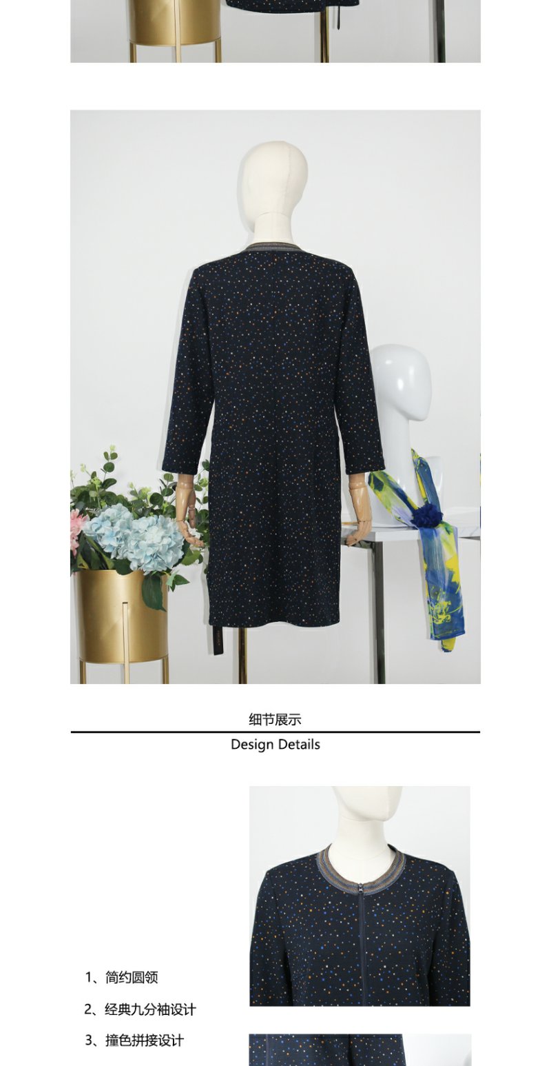 FOCALS福柯斯秋季提花针织拼接七分袖休闲圆领连衣裙F2YCX630BL