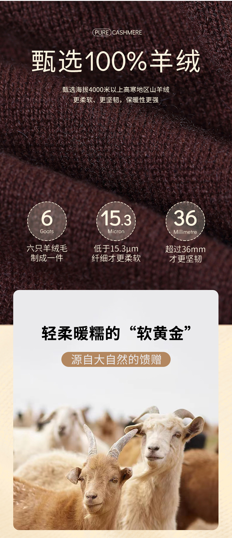 | 材质成分: 山羊绒(羊绒)100% |
