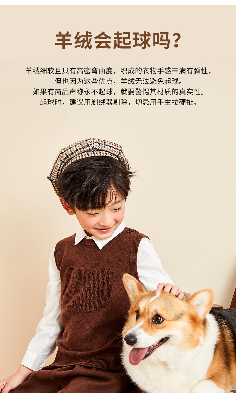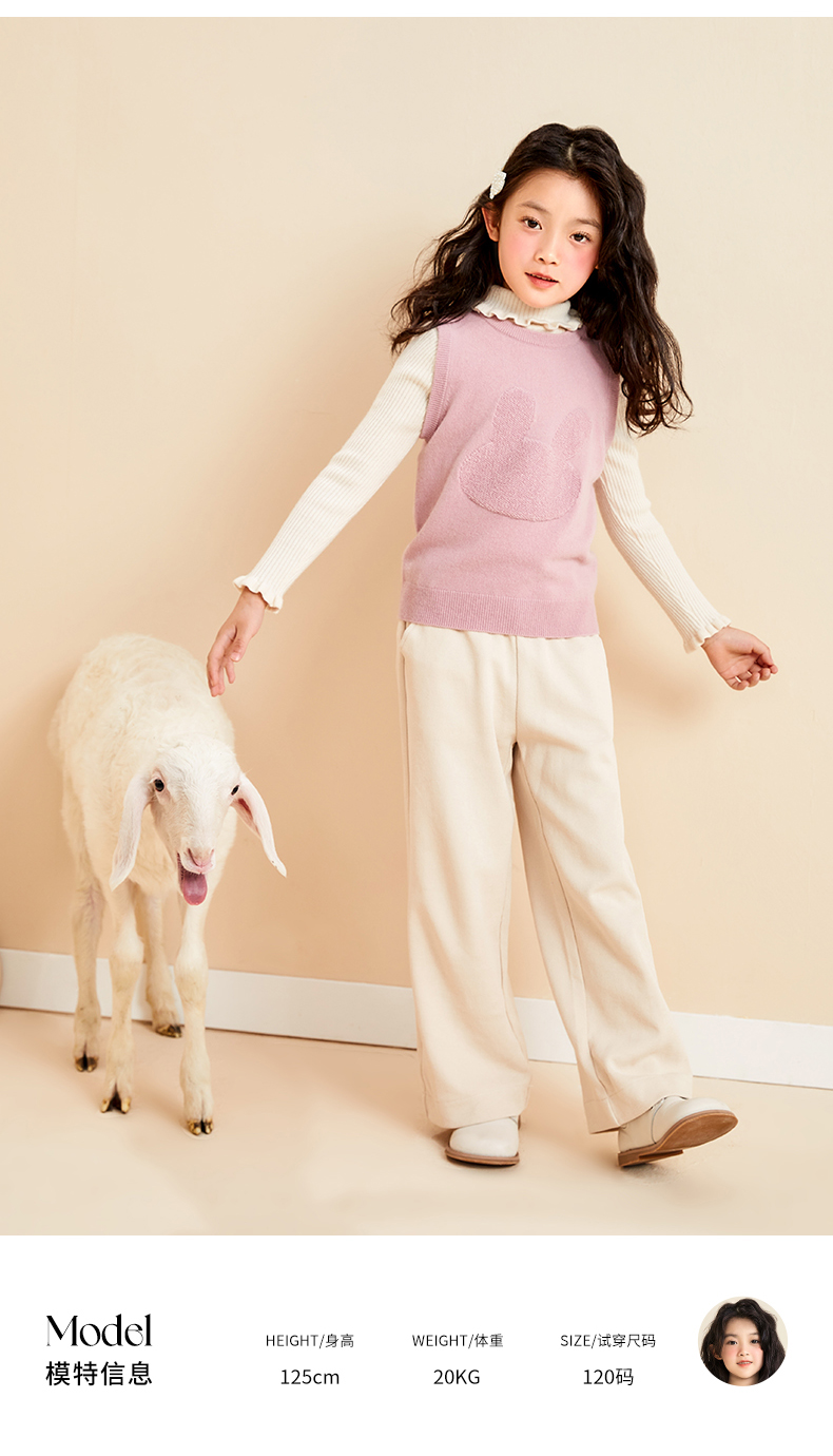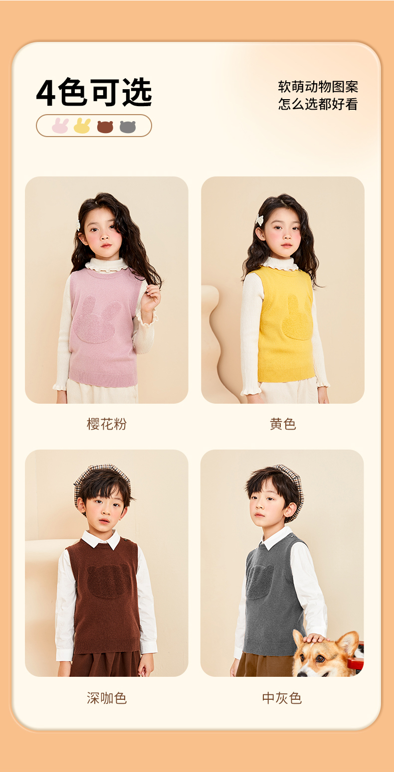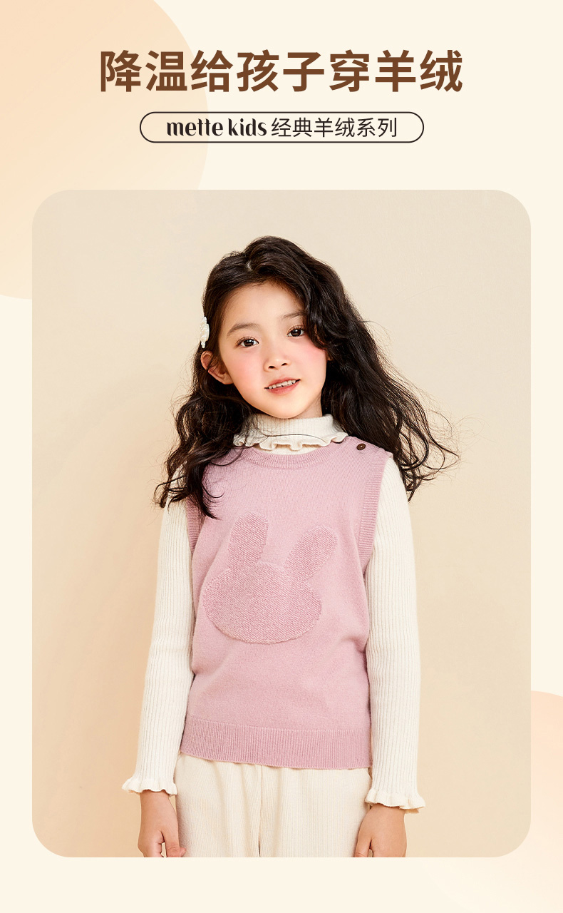 mettekids儿童纯羊绒衫2022春秋新款童装卡通套头毛衣背心针织衫