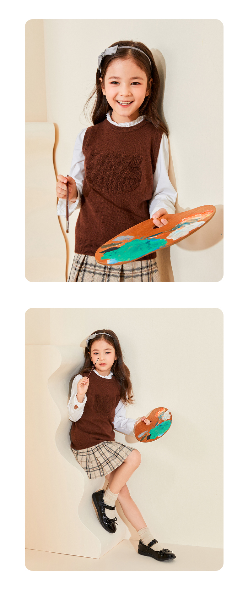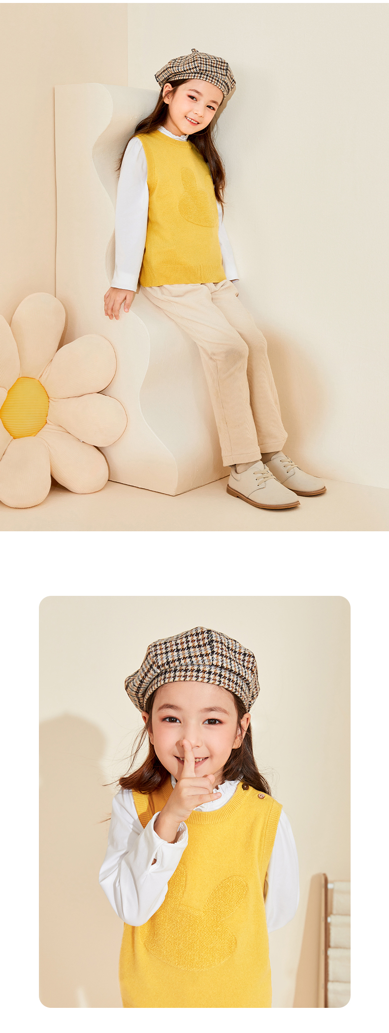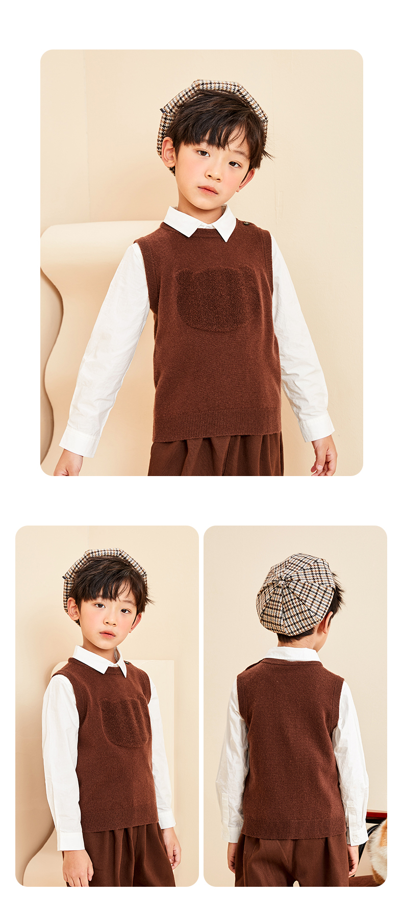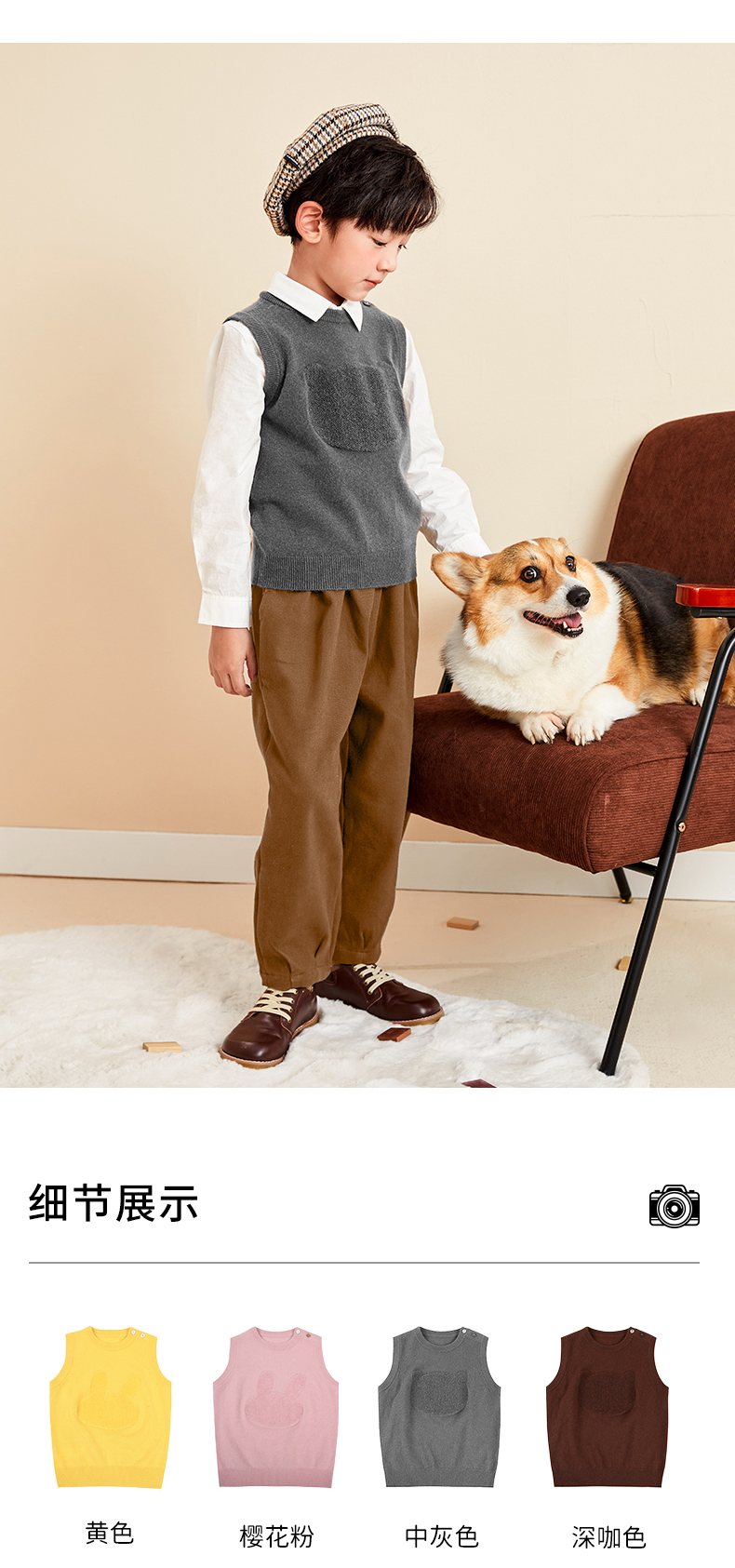 mettekids儿童纯羊绒衫2022春秋新款童装卡通套头毛衣背心针织衫