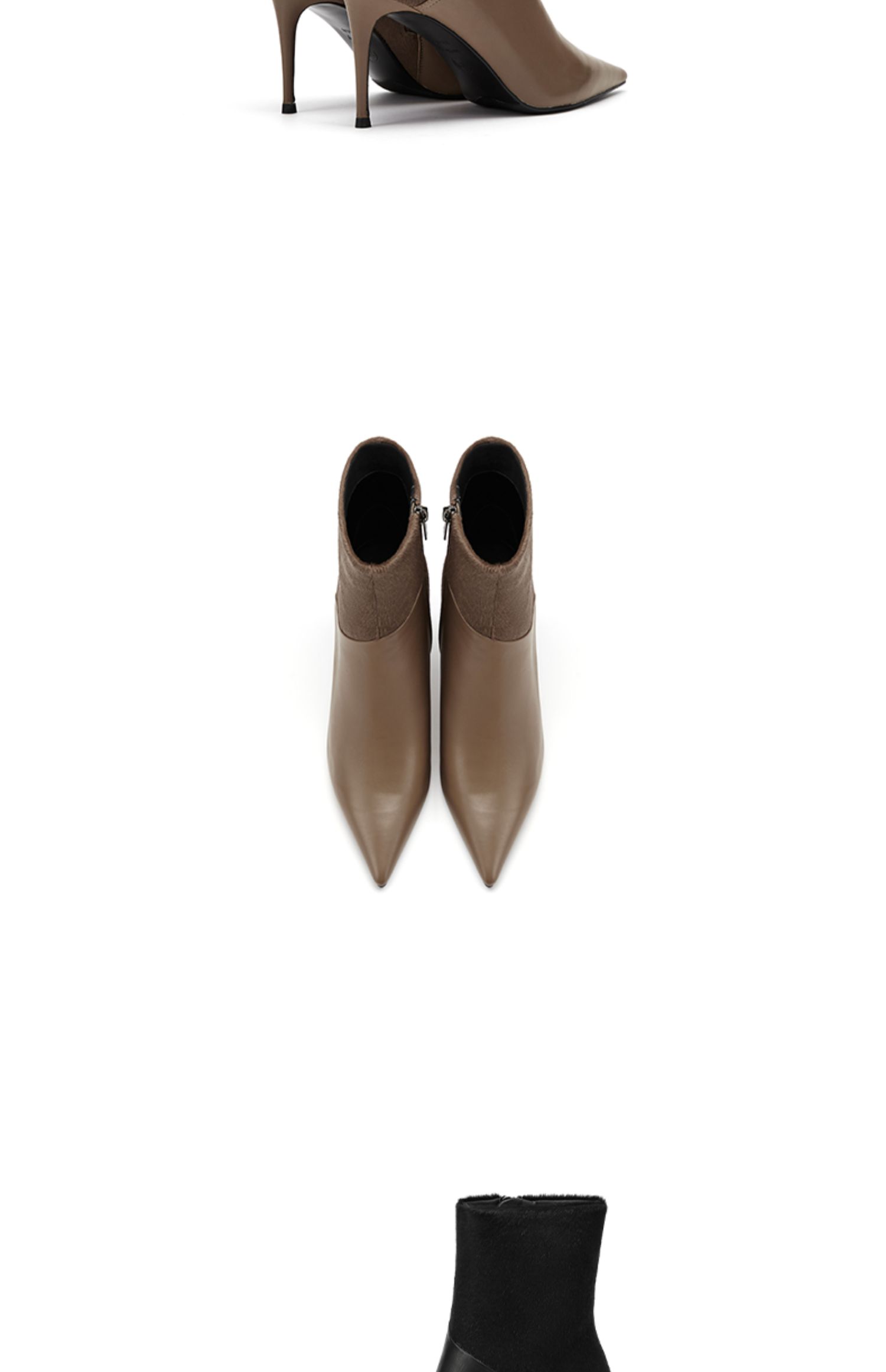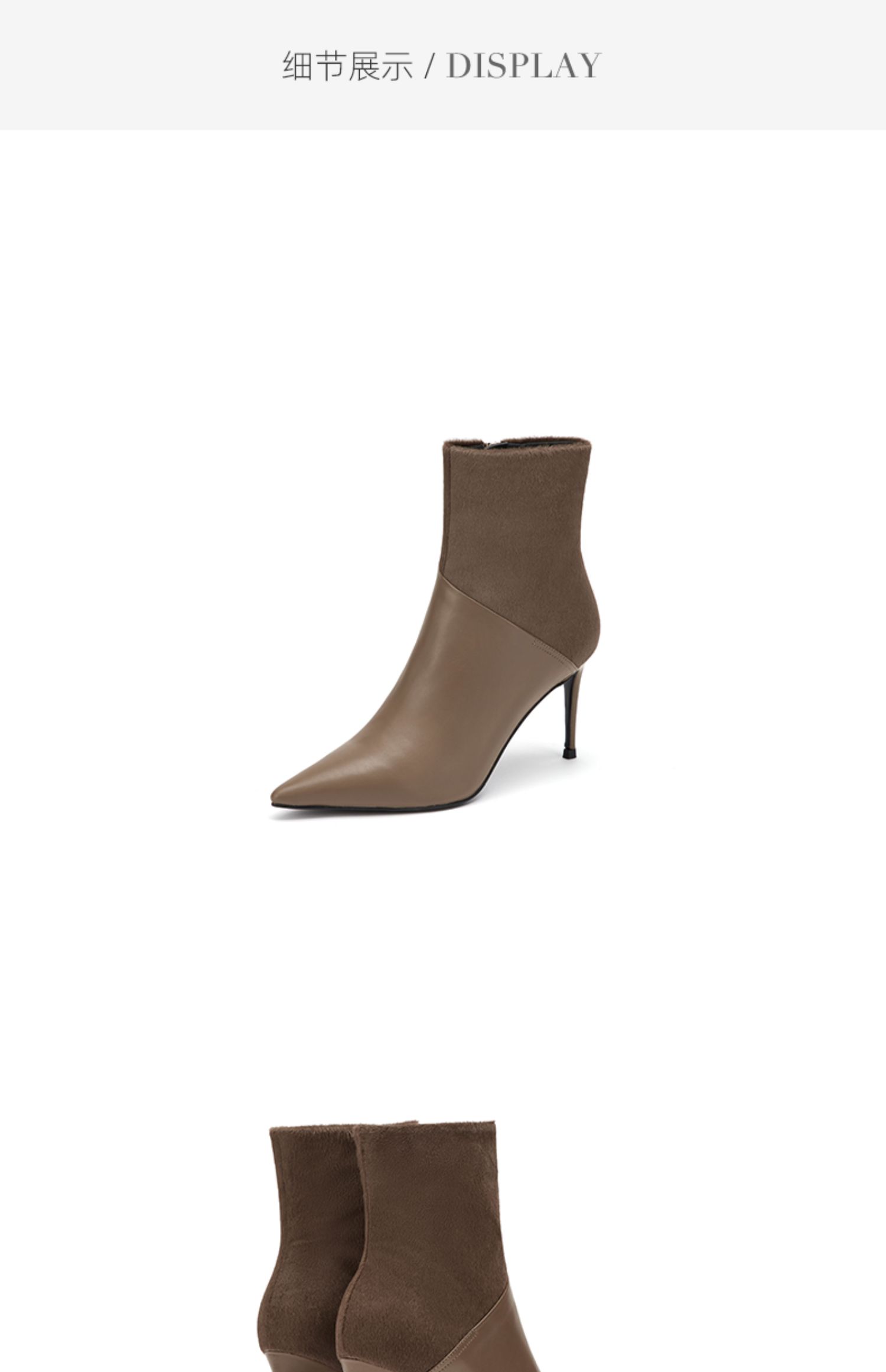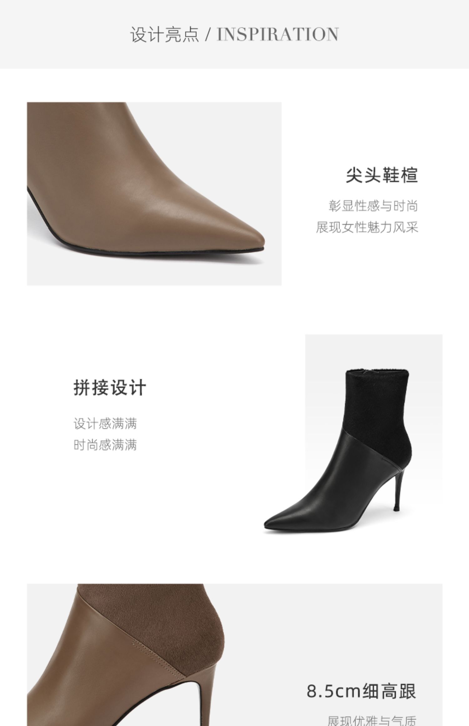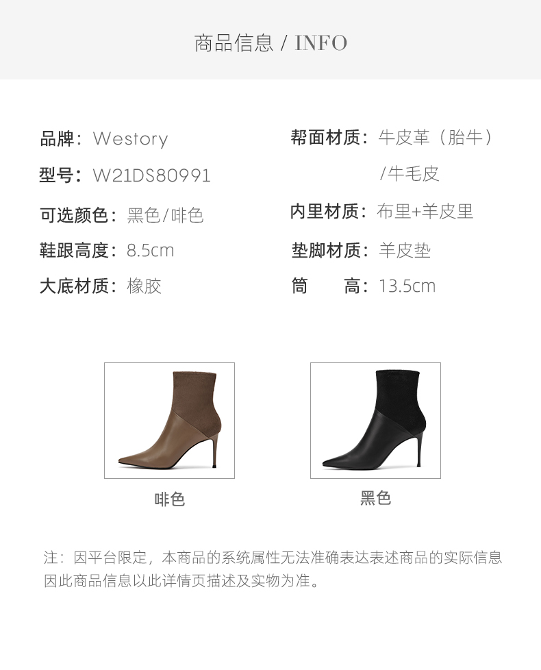westory2021秋季新款拼接尖头高跟短靴细跟时尚复古W21DS80991