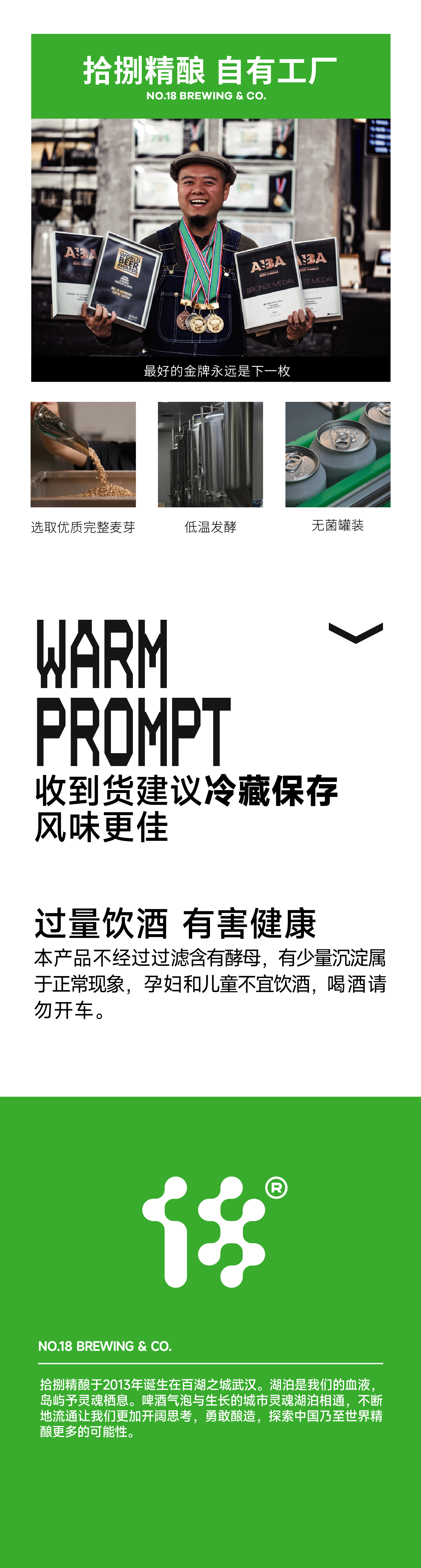 - 拾捌精酿酒厂创始于2013年,斩获15枚世界级精酿大奖。运营的精品餐酒吧18号酒馆,入选《LONELY PLANET》环球啤酒之旅中国五佳的精酿啤酒店铺。