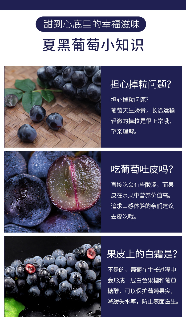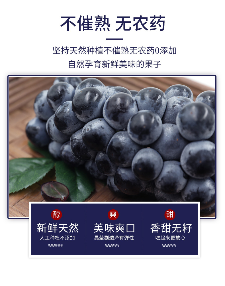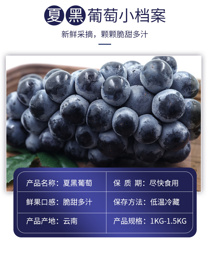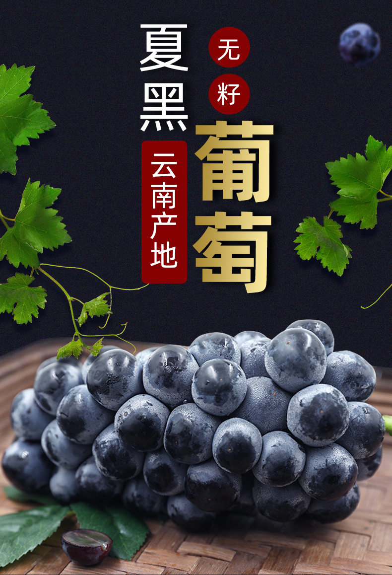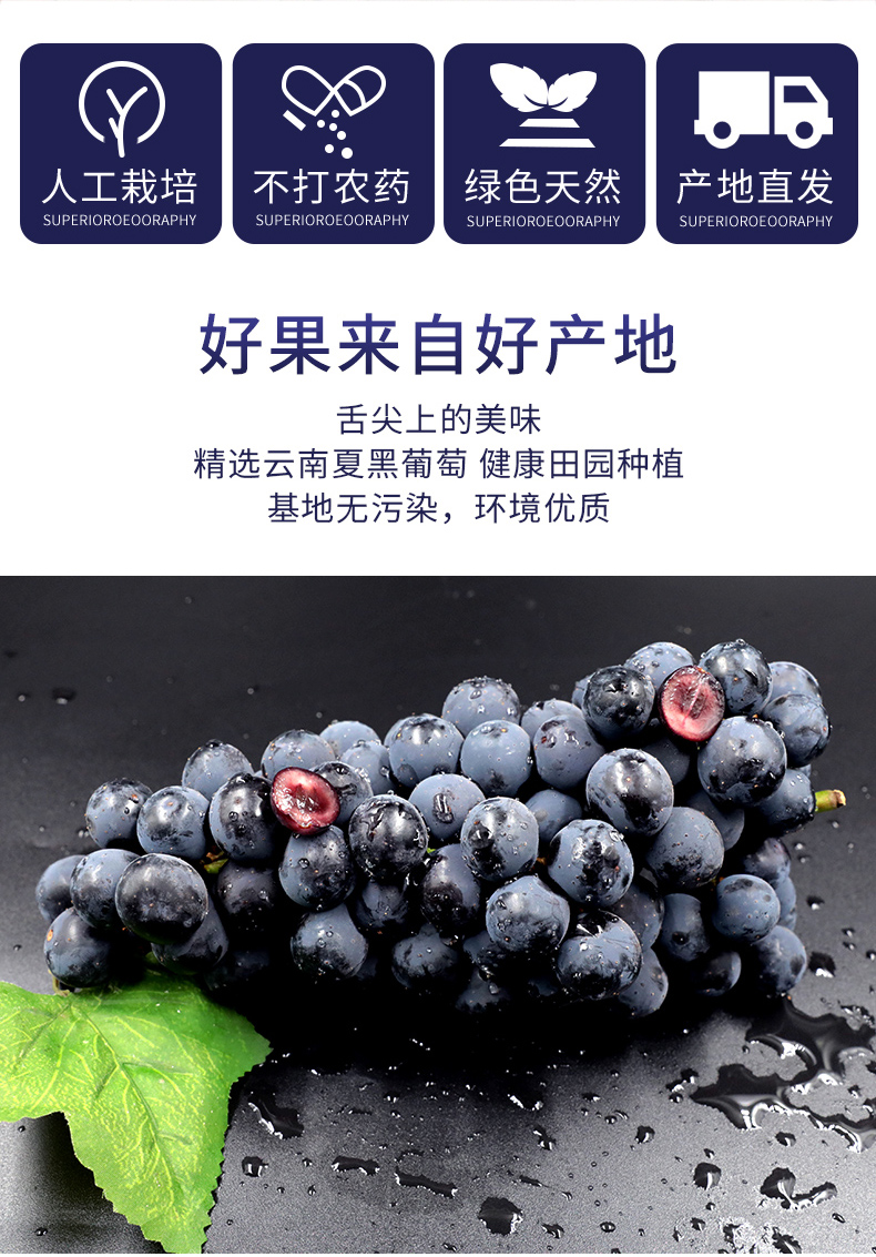 佳沃 云南夏黑无籽葡萄3斤装 新鲜提子 生鲜水果