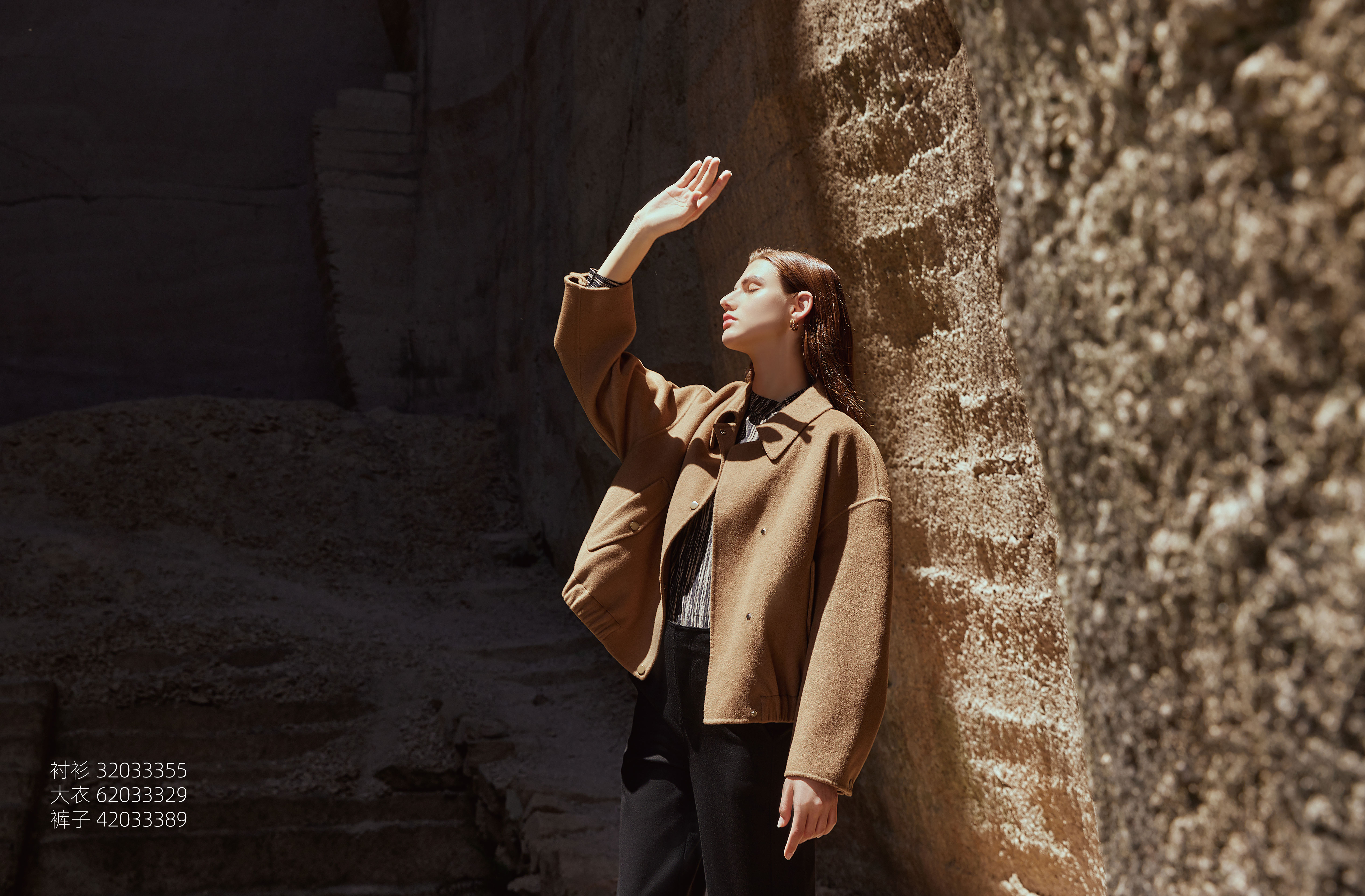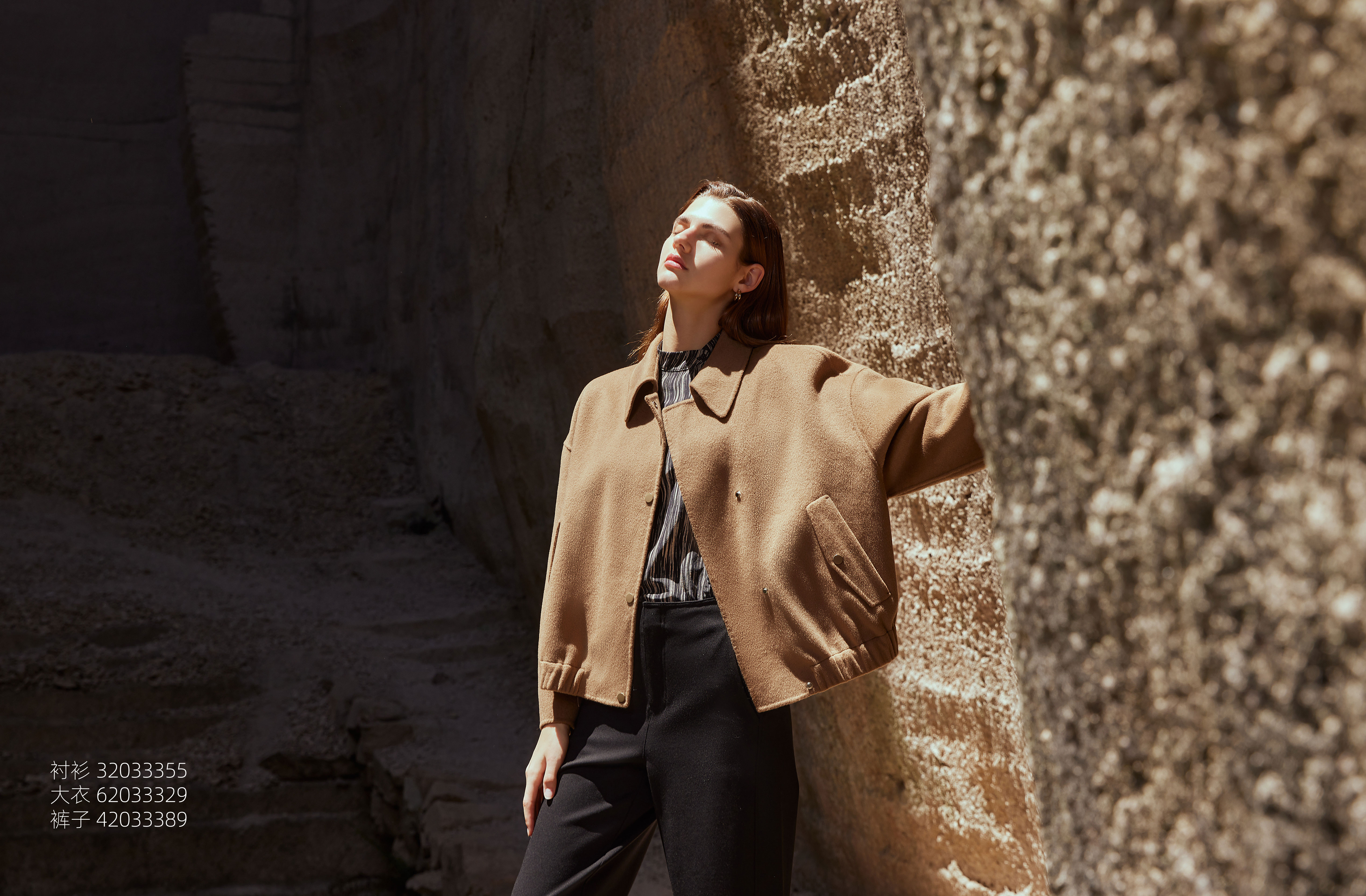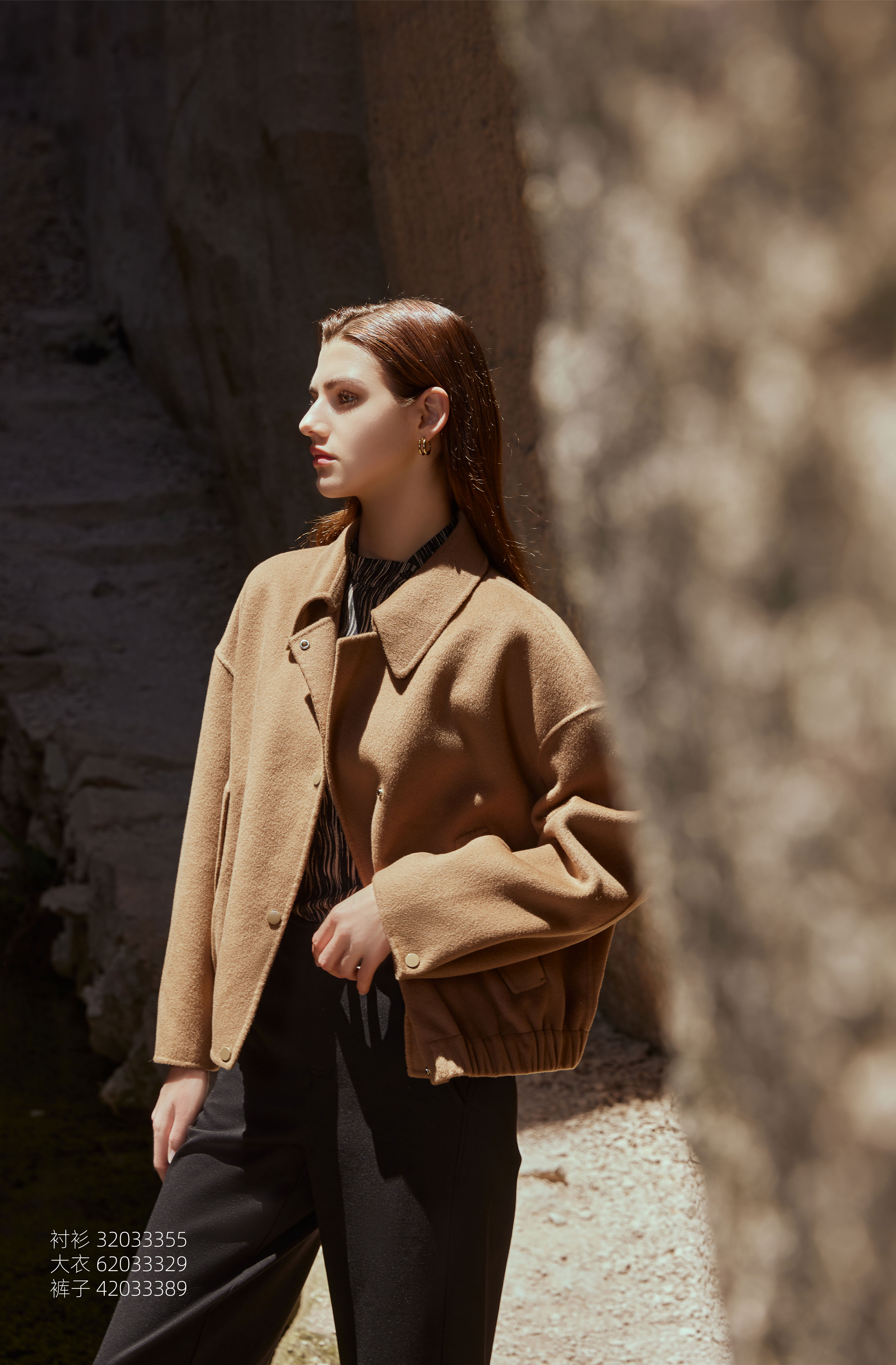 【羊毛羊绒短款外套】23年秋冬新品女士短款大衣时尚卡其挺括外套