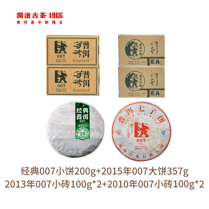 【老茶开仓】澜沧古茶2021年经典007小饼200g+2015年007大饼357g+2013年007小砖100g*2+2010年007小砖100g*2普洱茶生茶组合礼包