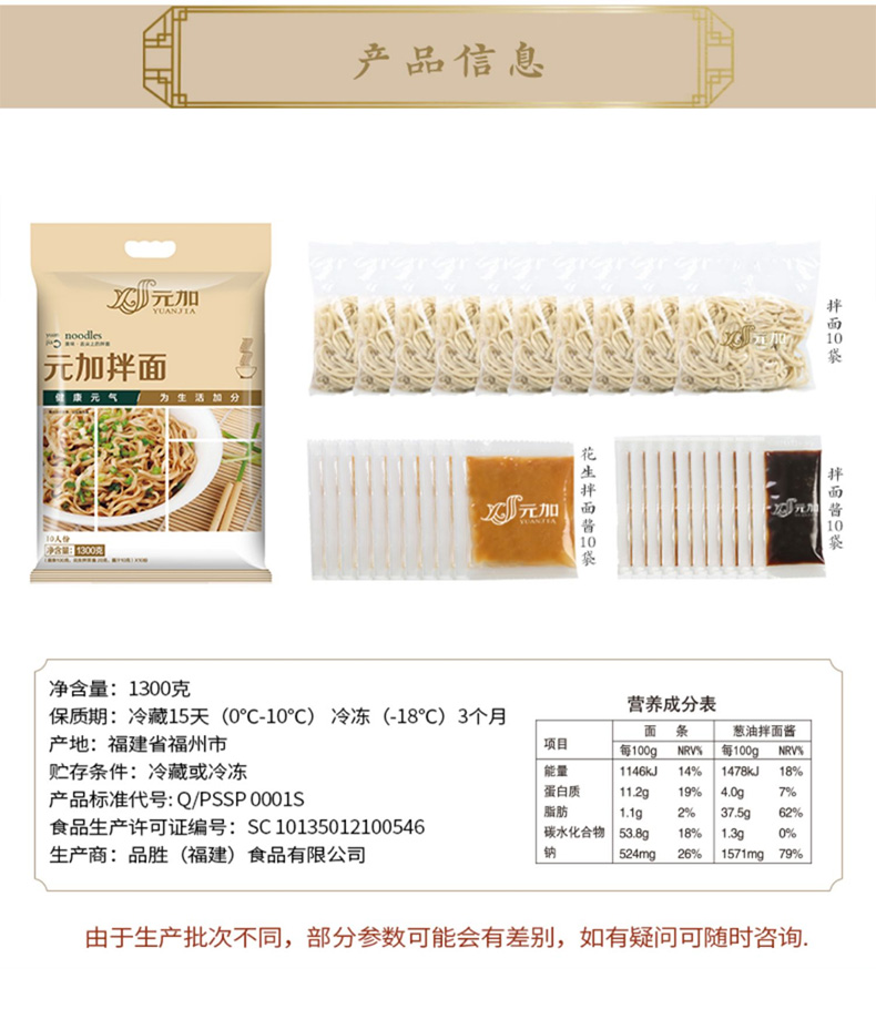元加花生酱拌面(1.3kg/包 内含10小包)生产日期:4月16日