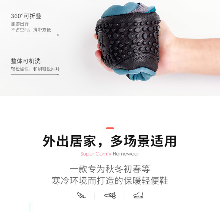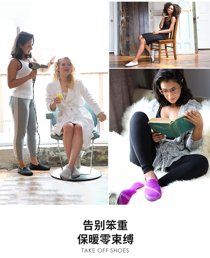 冬天宅家,穿没有后跟的棉拖,脚跟会冷;穿上Fitkicks暖暖鞋,在沙发上穿。看书、追剧,暖和又惬意。