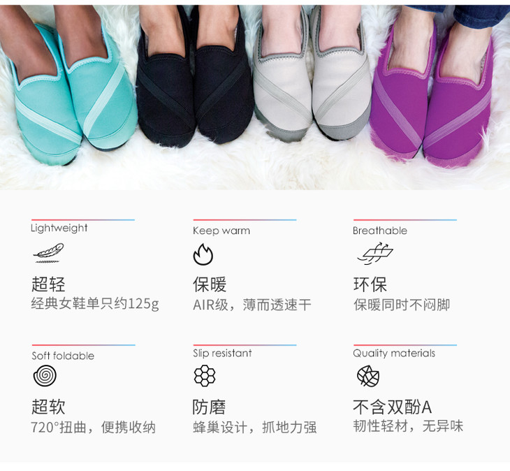 要出差或者去旅行的伙伴们也可以在背包放上一双。单只鞋子重量不足125g,随意卷成一团放进包里,不占重量更不占空间!