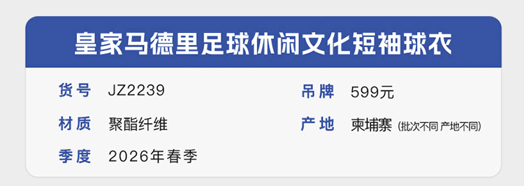 小李子ADIDAS阿迪达斯皇家马德里足球休闲文化短袖球衣JZ2239