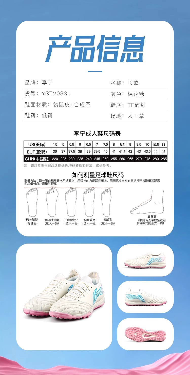 小李子李宁合作款长歌碎钉TF袋鼠皮云缓震铁系列足球鞋成人男