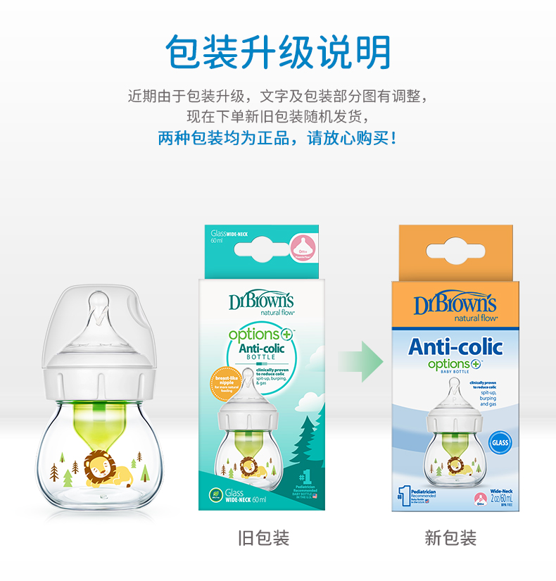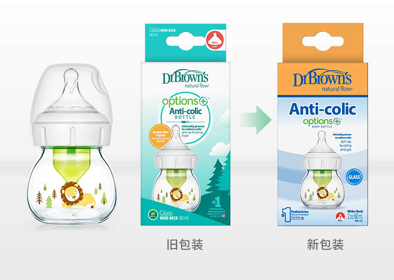 DrBrowns布朗博士爱宝选2安士玻璃宽口婴儿奶瓶WB21601-CH#/60ml