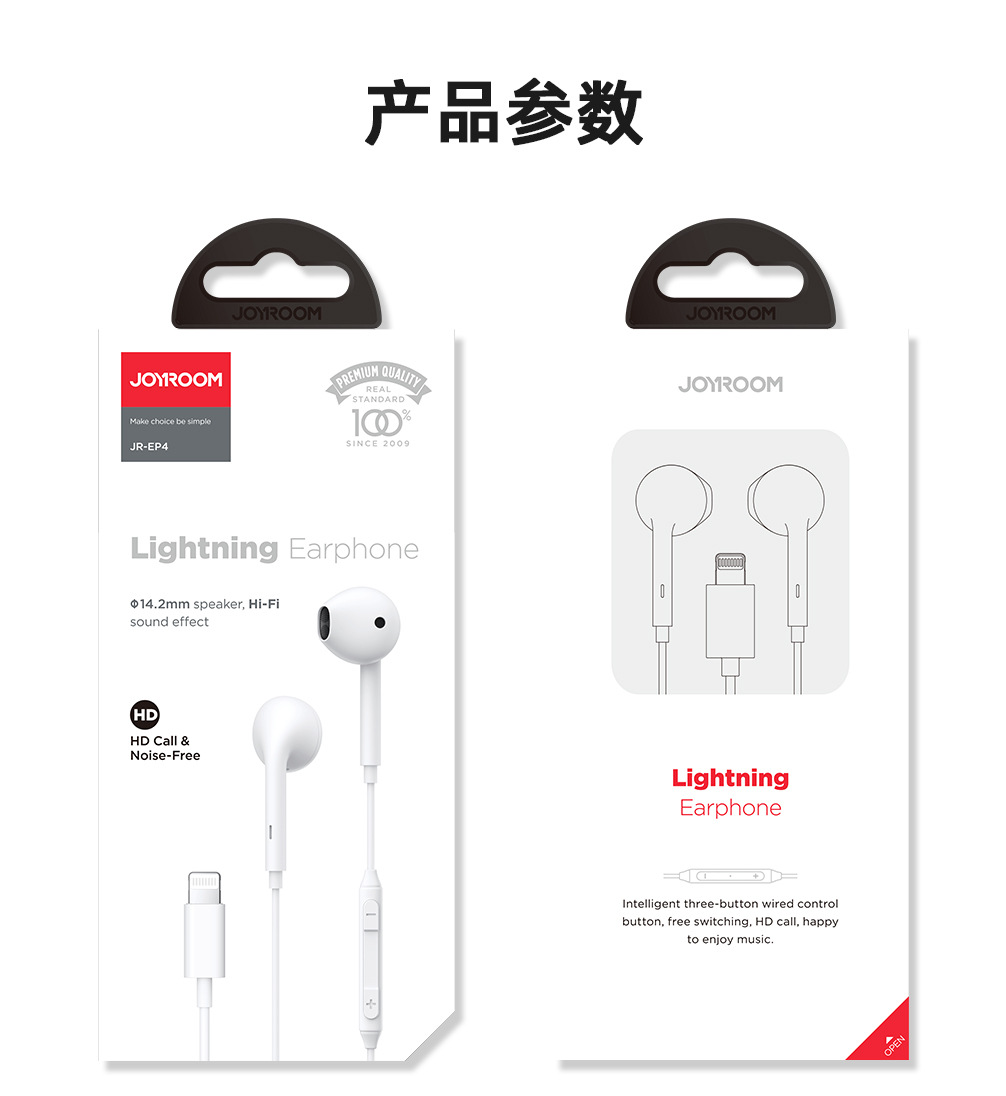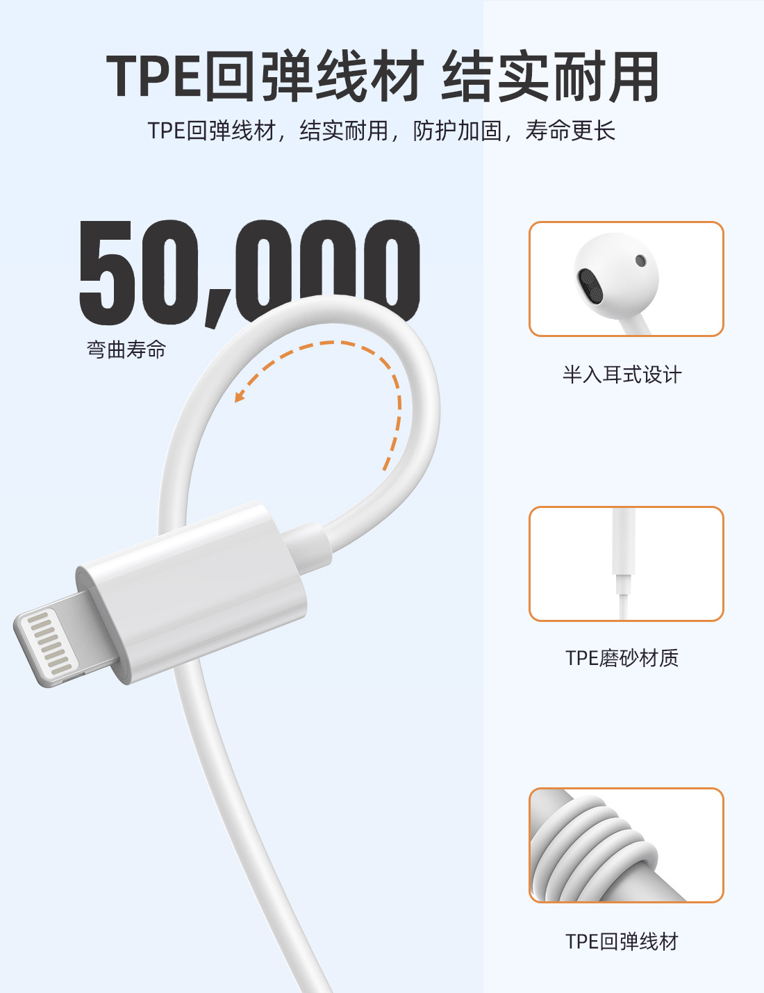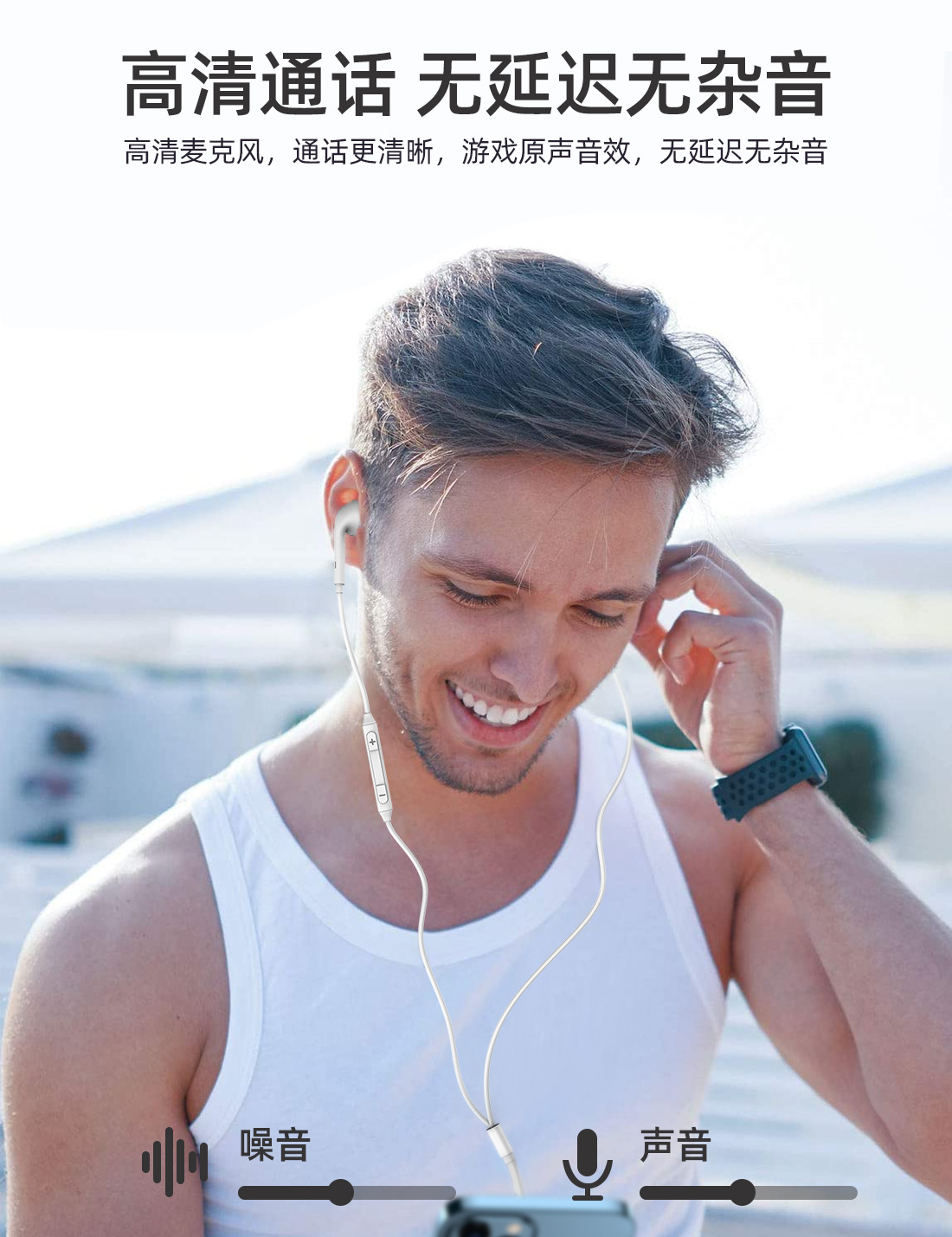 机乐堂lightning线控耳机JR-EP4白色白色动圈式半入耳游戏通话无延迟适用于苹果