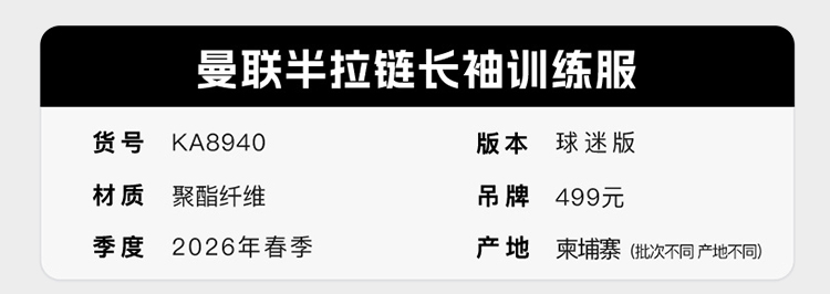小李子ADIDAS阿迪达斯曼联球迷版半拉链长袖训练服成人男KA8940