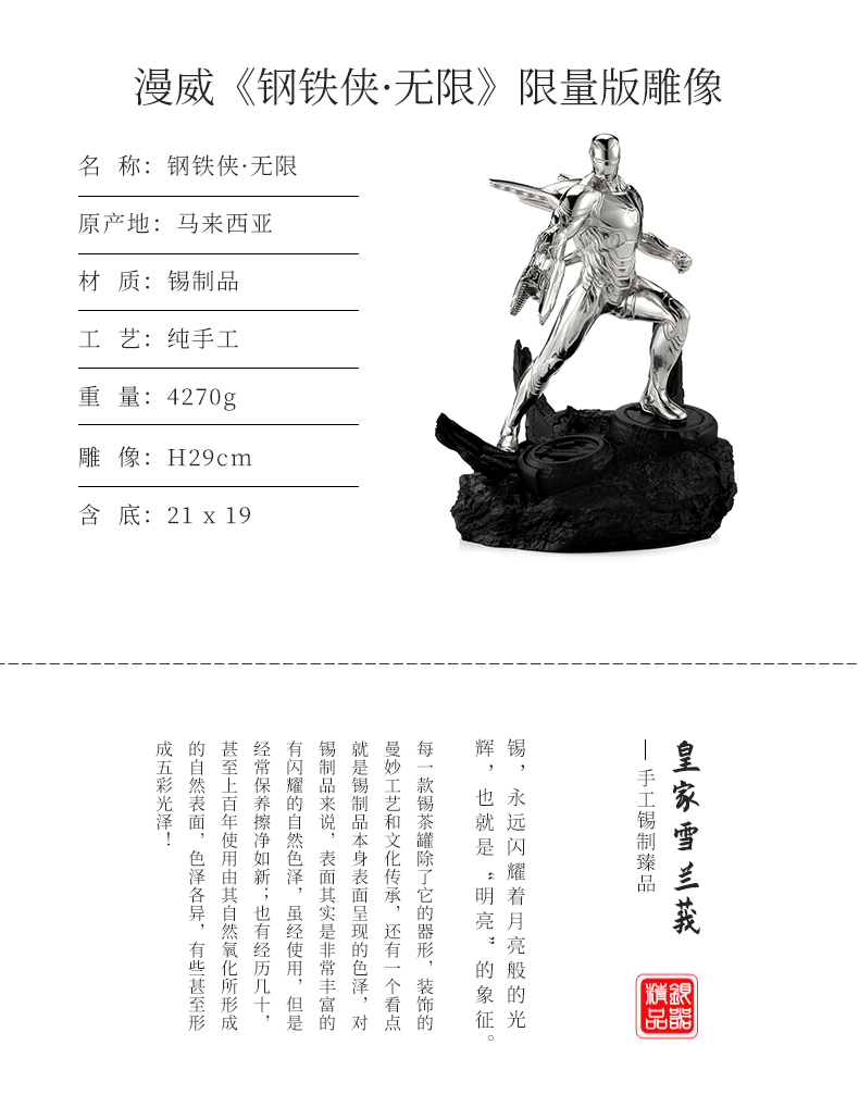 Royal Selangor皇家雪兰莪 钢铁侠无限战争雕像 漫威复仇者联盟钢铁侠无限战争限量版联名正品手办锡器