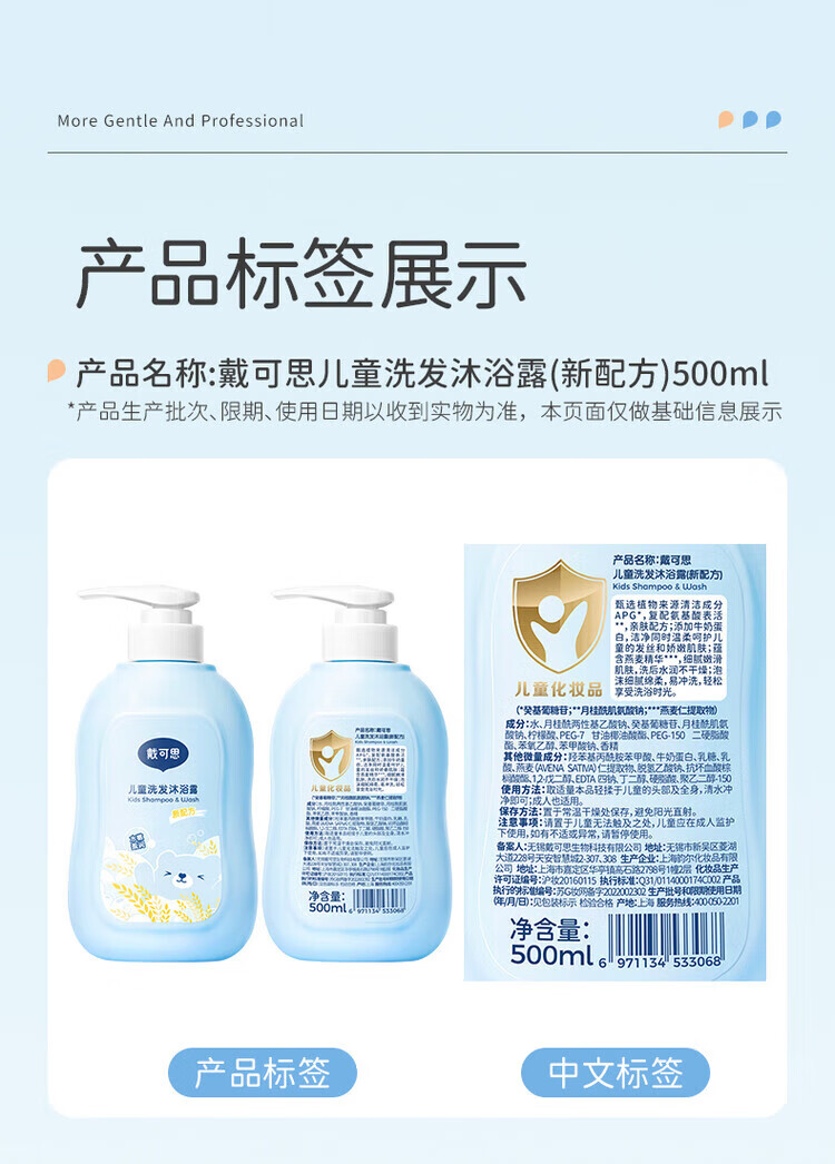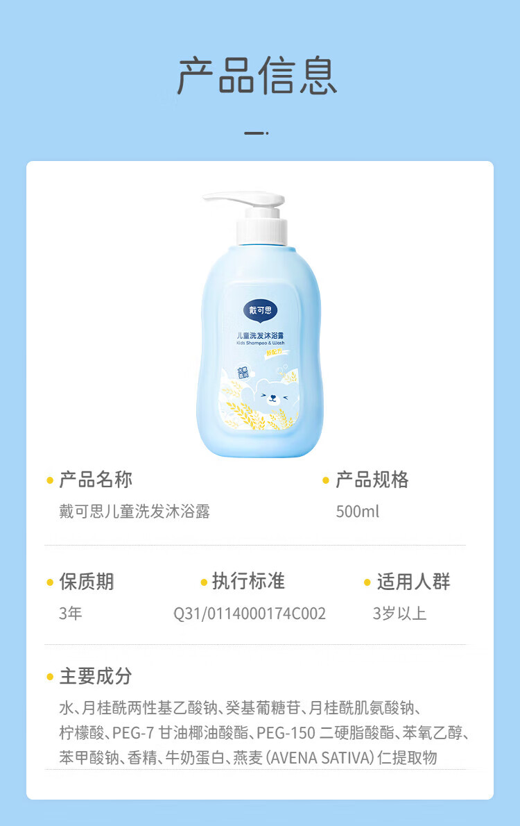 戴可思儿童洗发沐浴露(蓝胖子)-升级款500ml