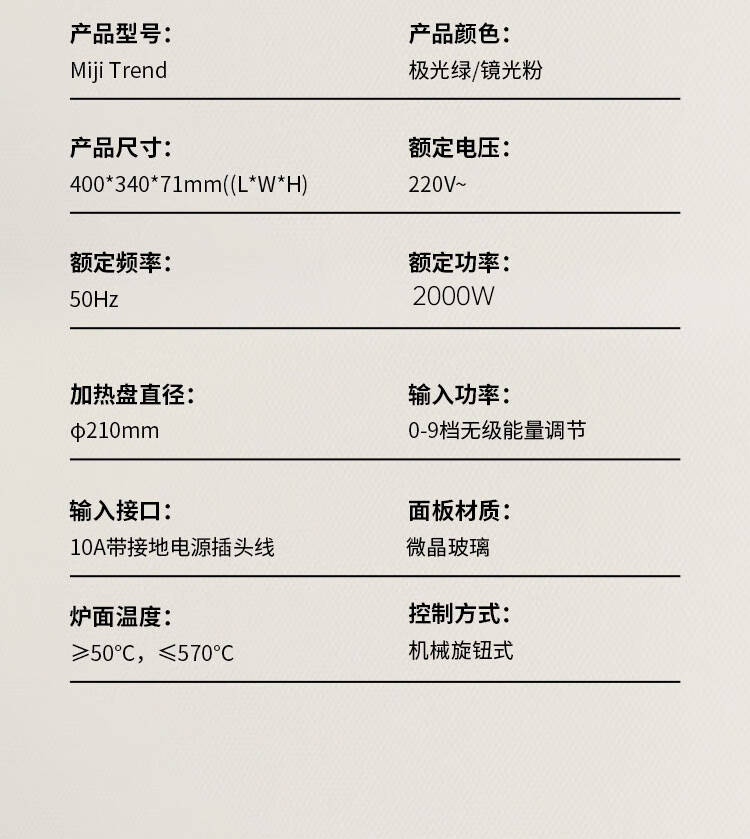 米技德国米技电陶炉Miji Trend家用大功率台式电陶炉茶炉 时尚轻奢单圈极光绿
