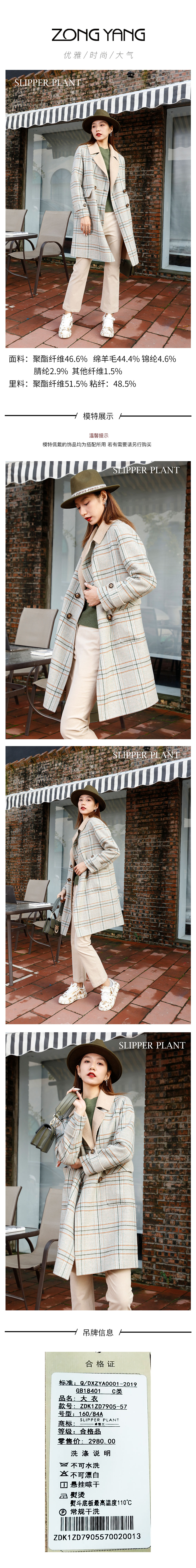 宗洋&卓蔻兰女士中长款时尚格纹大衣ZDK1ZD7905-57