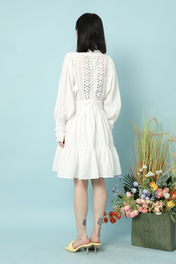L.Fleuri 气质收腰褶皱感镂空连衣裙 15773