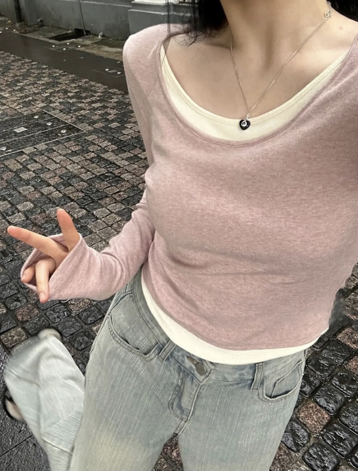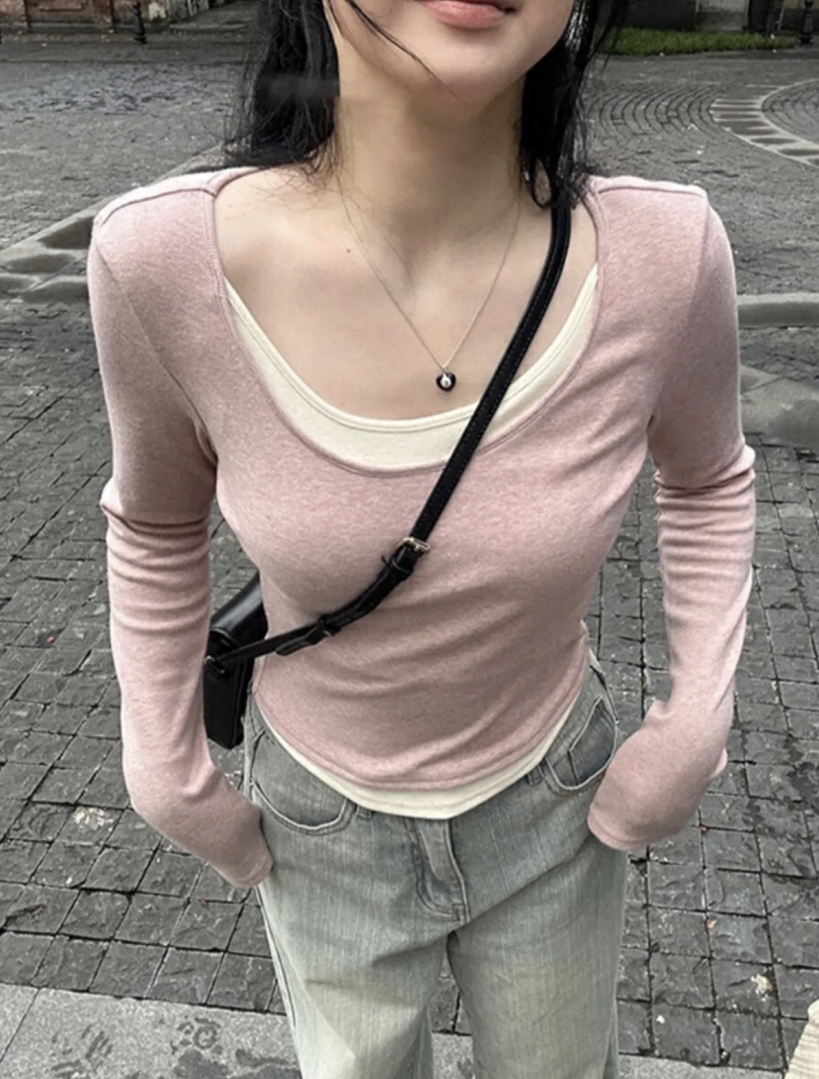 <曾小咸推荐> 假两件感拼接撞色上衣